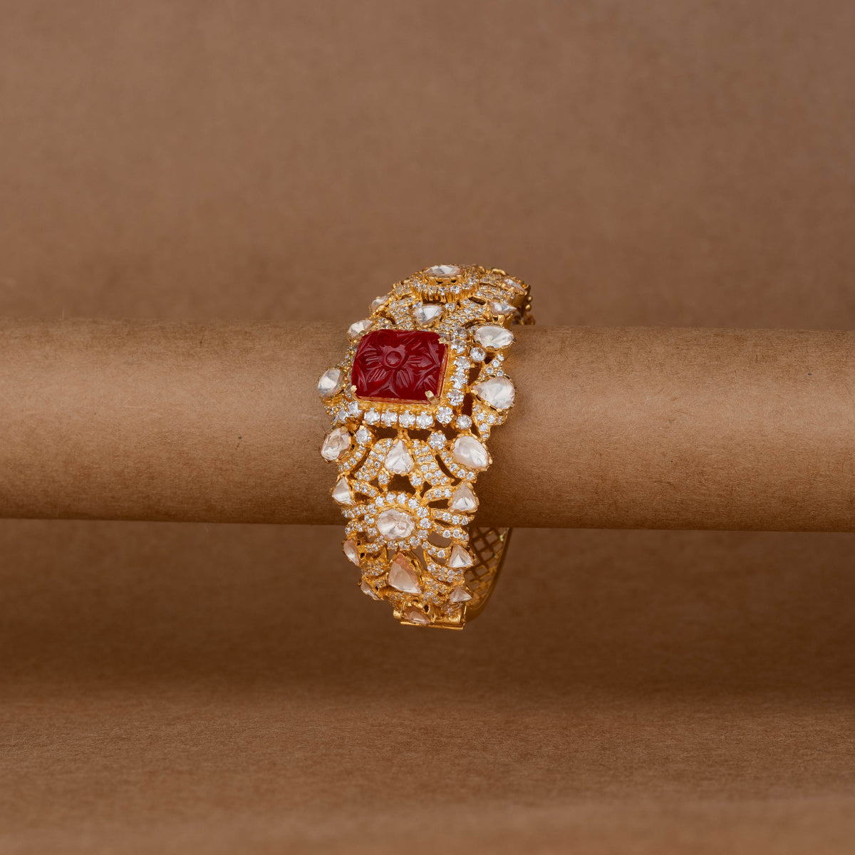Glamorous Glittering Ruby Silver Cuff Bracelet
