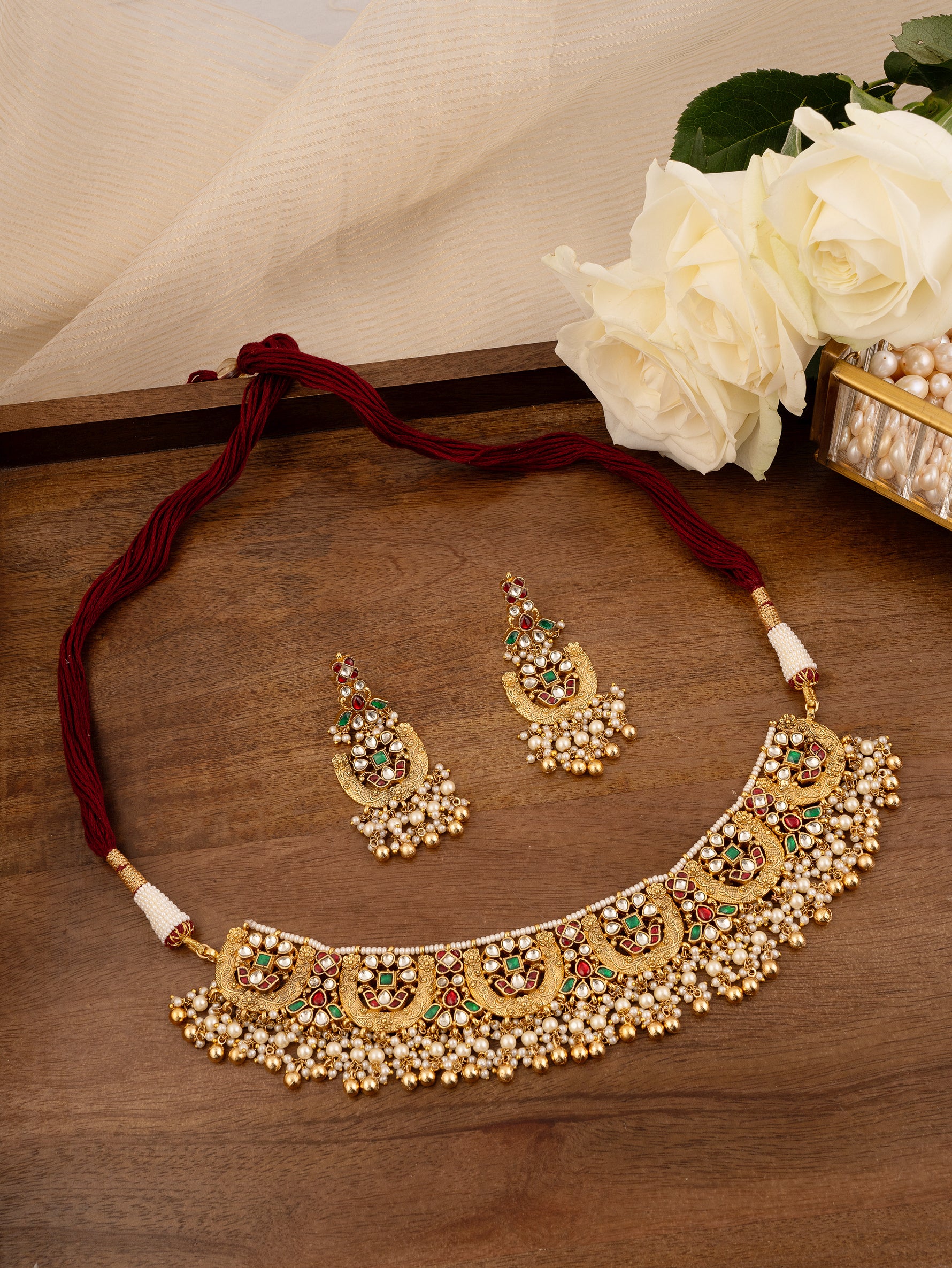 Adorned with Kemp stones and vibrant gems, our meticulously crafted pieces celebrate tradition while adding a touch of regal elegance to your look. Elevate your style with jewelry that tells a story of legacy and devotion.