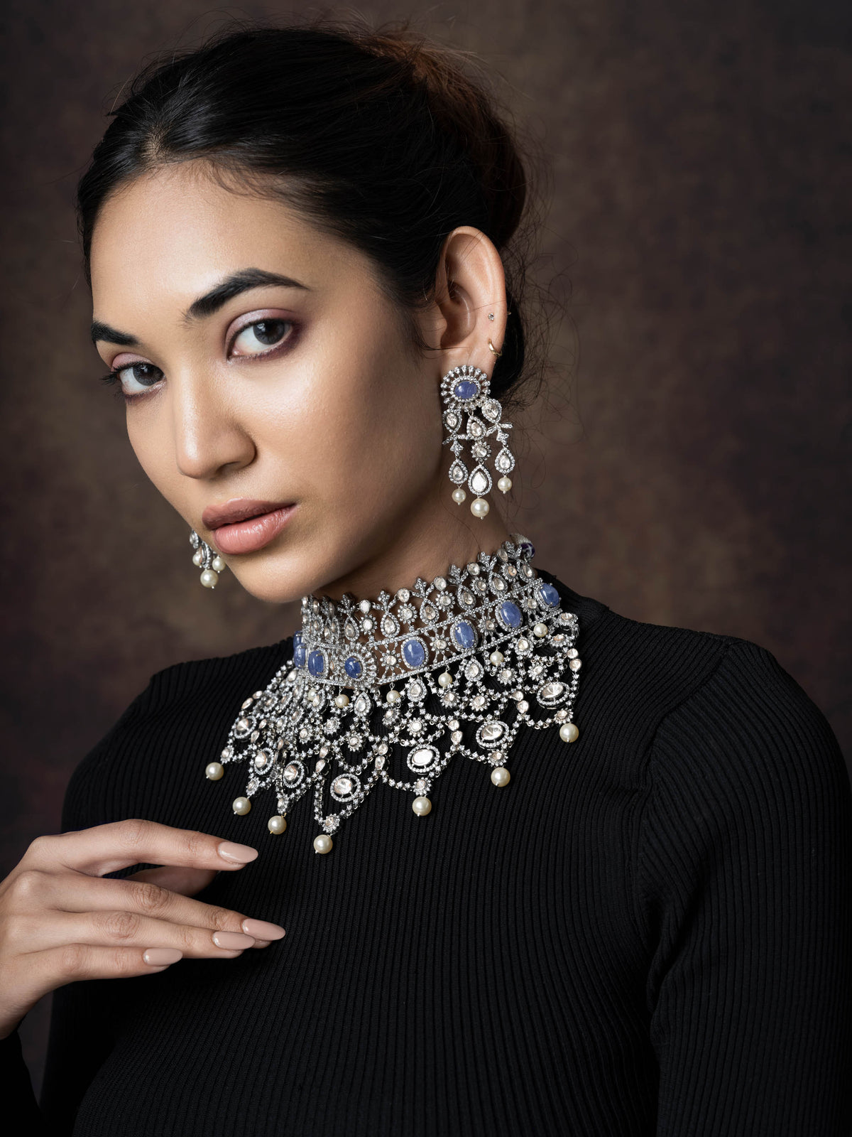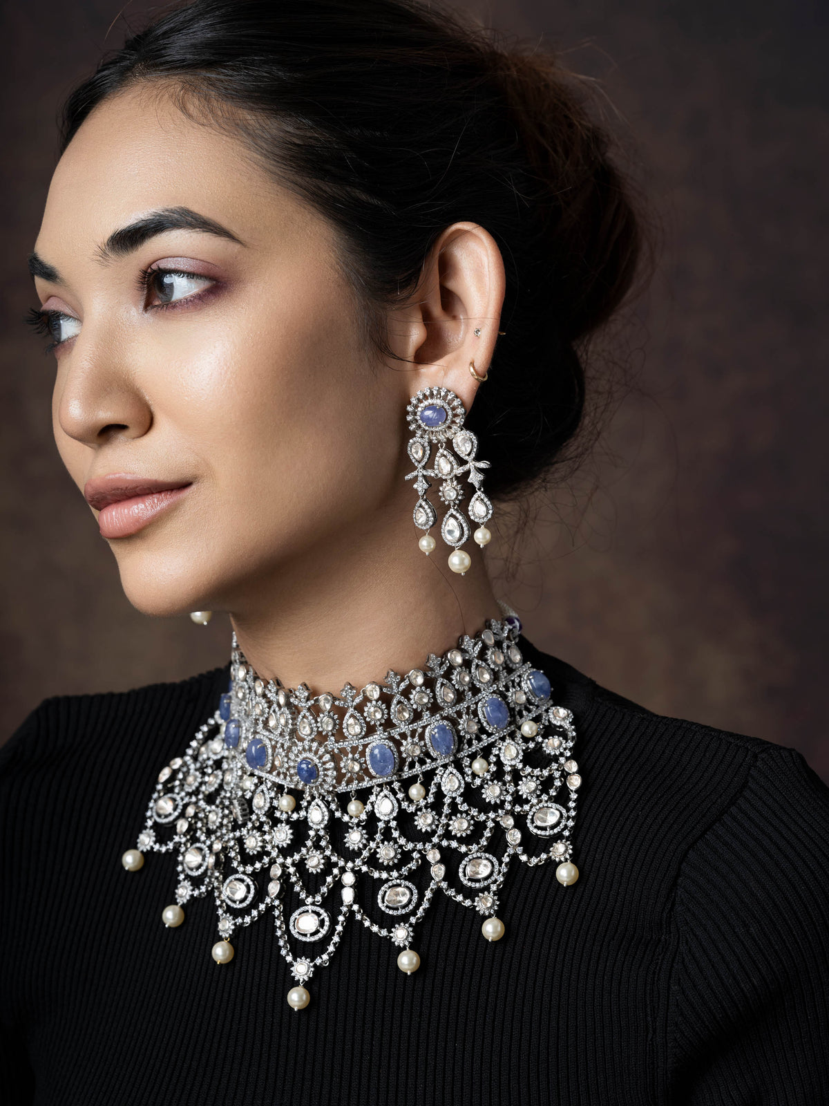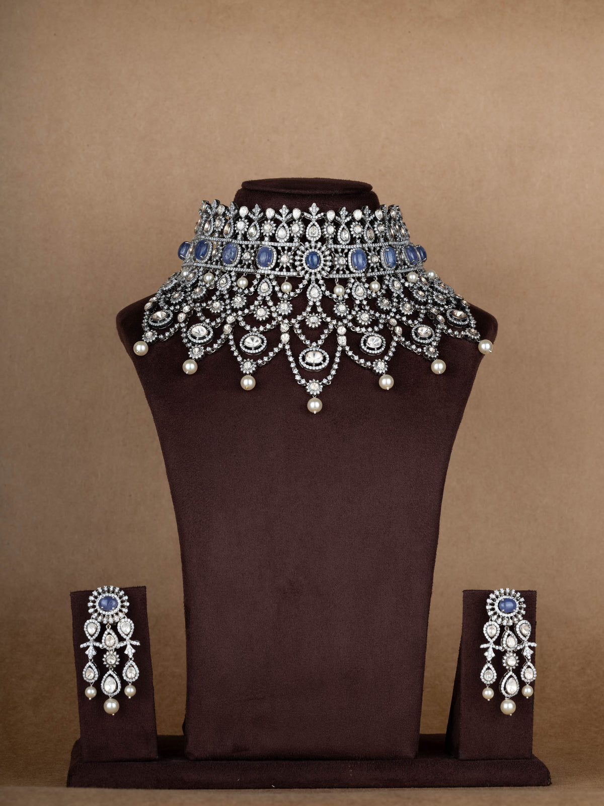 Imara,Dazzling Statement Midnight Blue Silver Choker Set