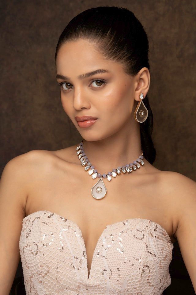Shine in Studio Gulabi’s White Diamond & Gold-Plated Necklace Set