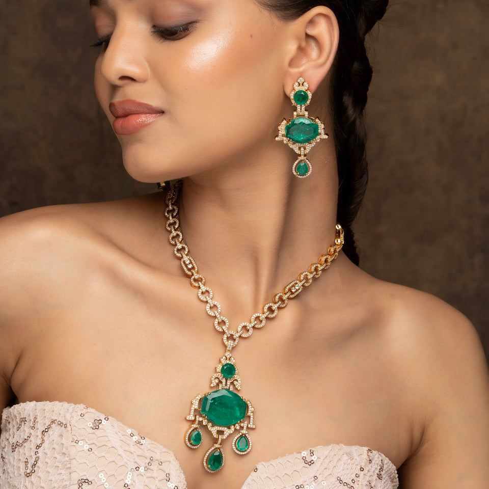 Grace Yourself with Studio Gulabi’s Green Stone & Gold-Plated Diamond Necklace Set