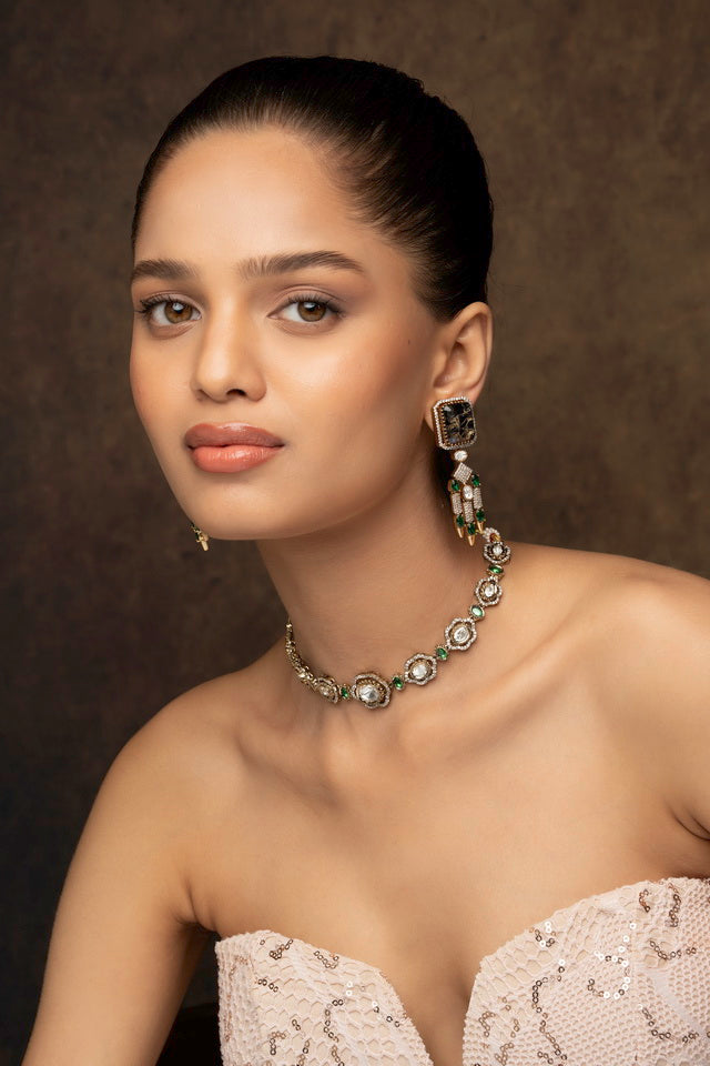 Shine Bright with Studio Gulabi’s White & Gold-Plated Diamond Necklace Set