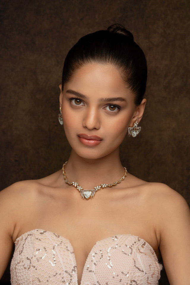 Shine Bright with Studio Gulabi’s White & Gold-Plated Diamond Necklace Set