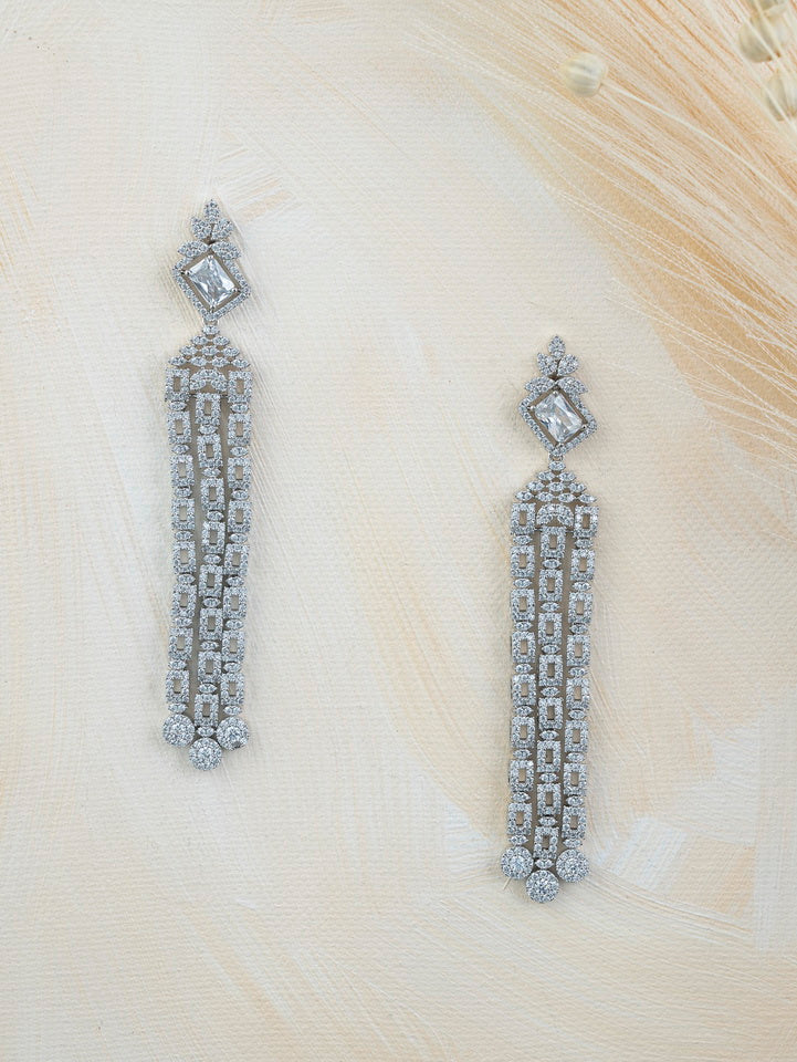 White Color Silver Plated Faux Diamond Earrings