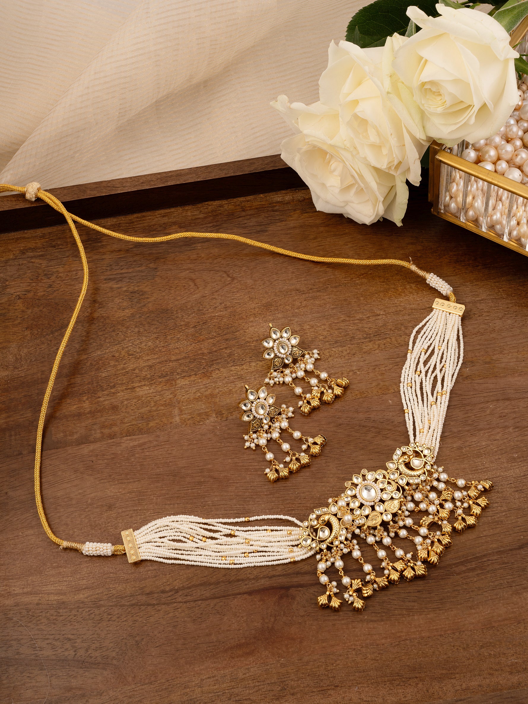 White Colour Gold Plated Jadau Kundan Necklace Set
