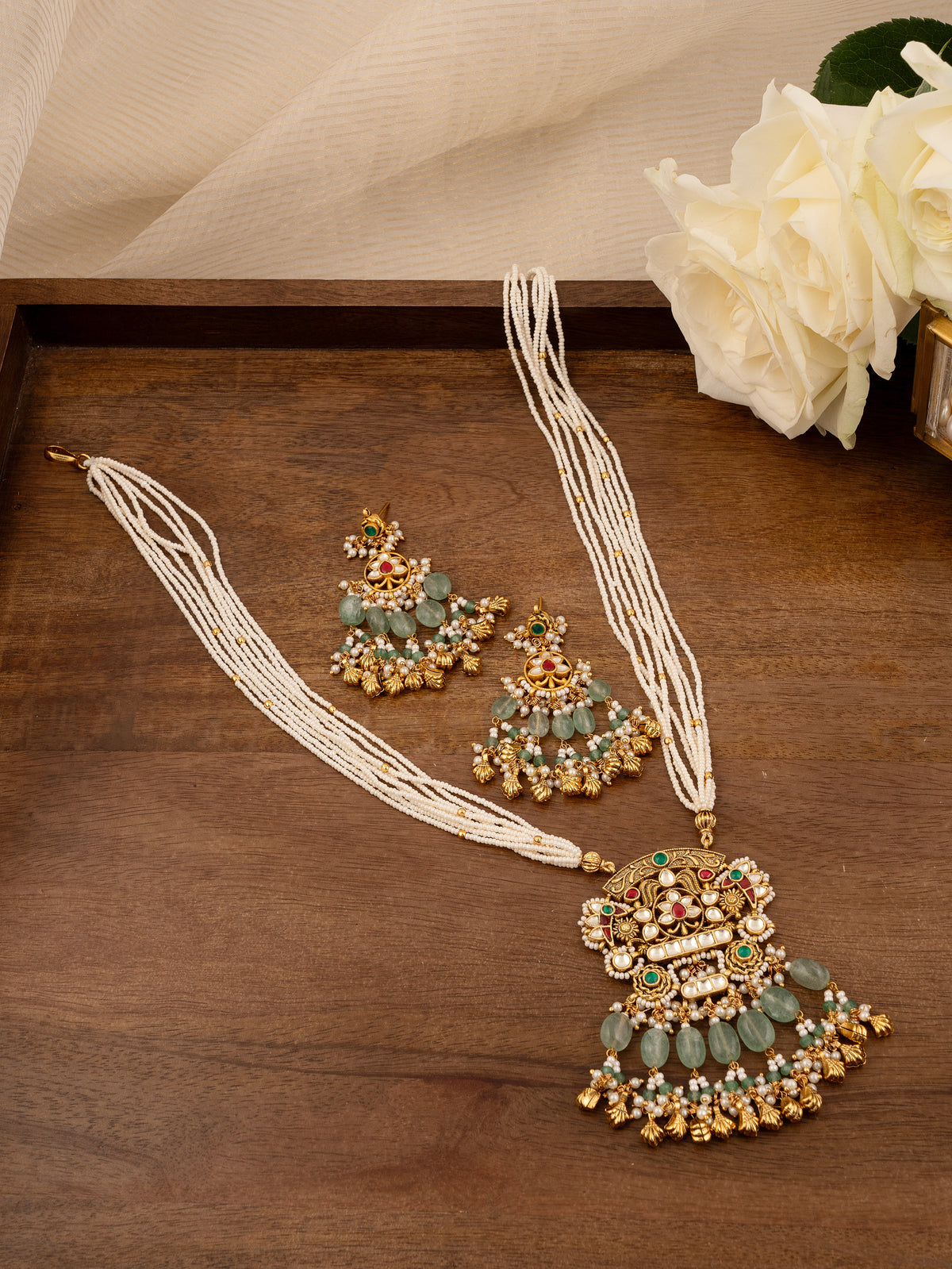 Green Color Gold Plated Jadau Kundan Necklace Set
