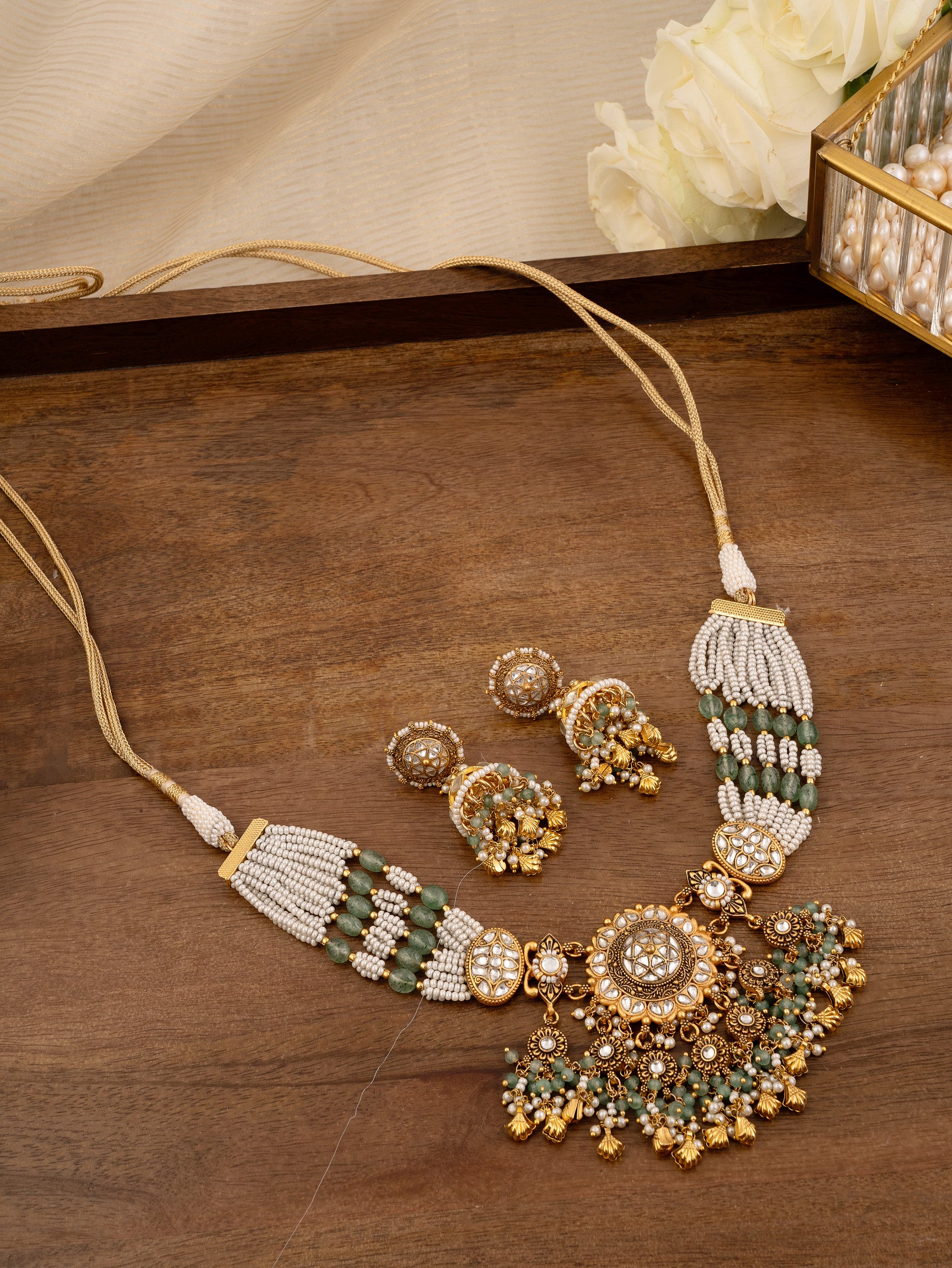 Multicolor Gold Plated Jadau Kundan Necklace Set