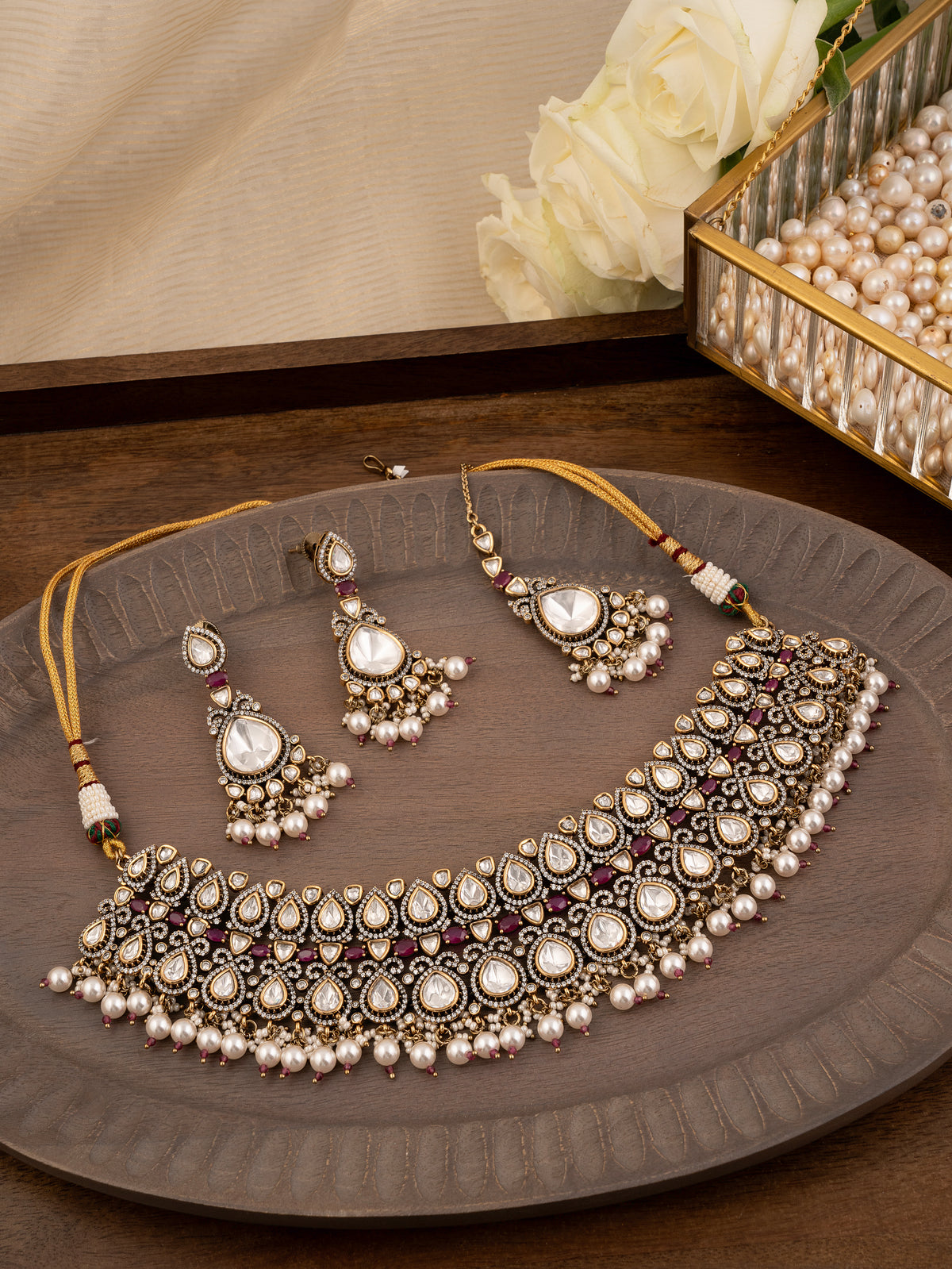 - Contains: One Necklace and One Pair of Earrings And One Mang Tika