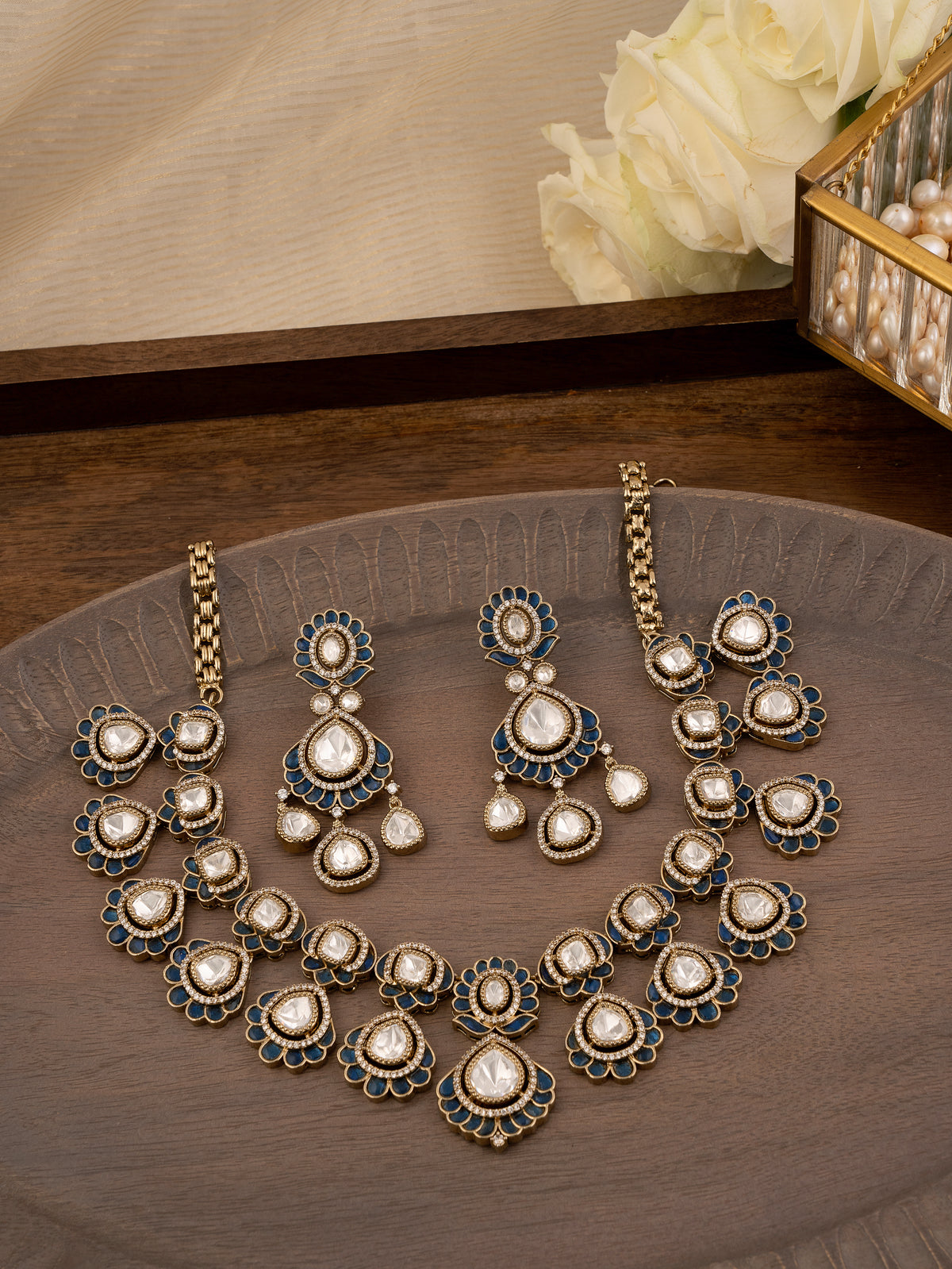 At Studio Gulabi, we celebrate the timeless charm of Polki craftsmanship with a modern touch. Our Faux Polki Collection reimagines the grandeur of regal jewelry, blending traditional artistry with contemporary elegance. Crafted using the age-old Kundan technique, each piece features uncut faux Polki stones set with silver foiling, enhancing their brilliance and lending them a rich, royal glow. Experience luxury and heritage, made accessible with Studio Gulabi.