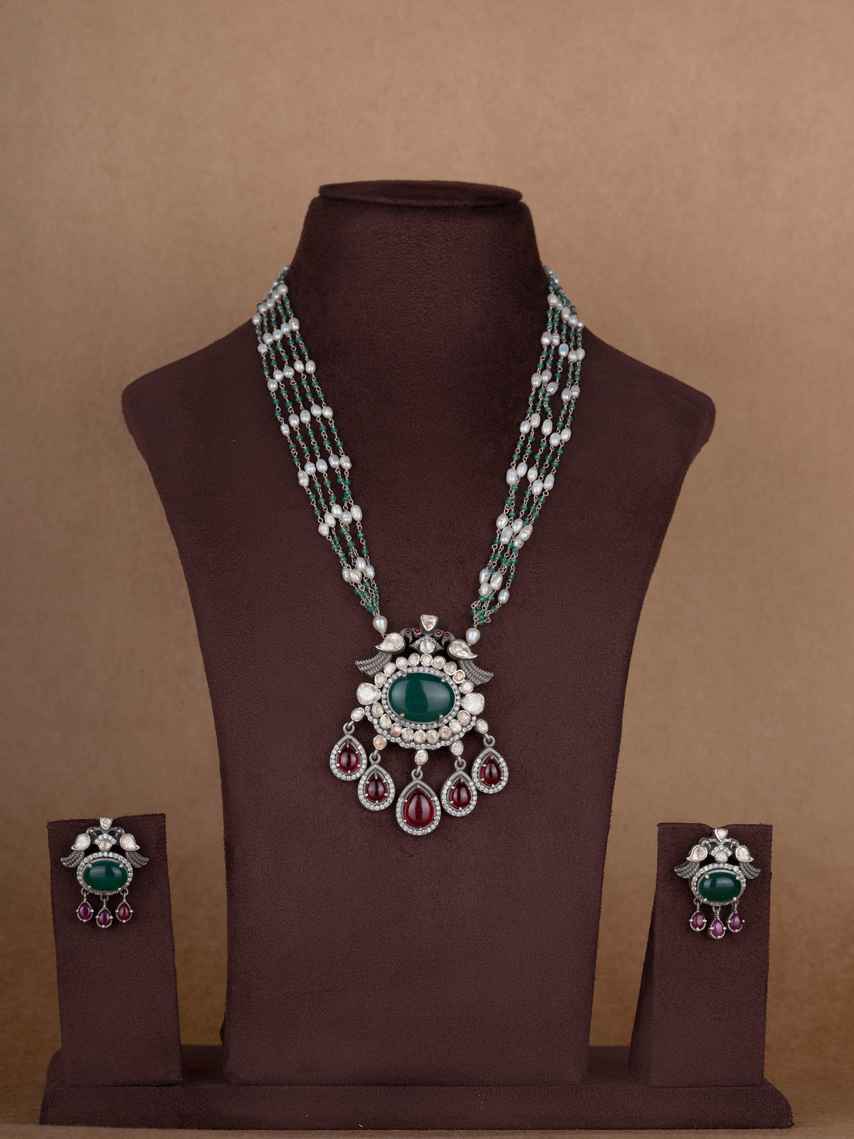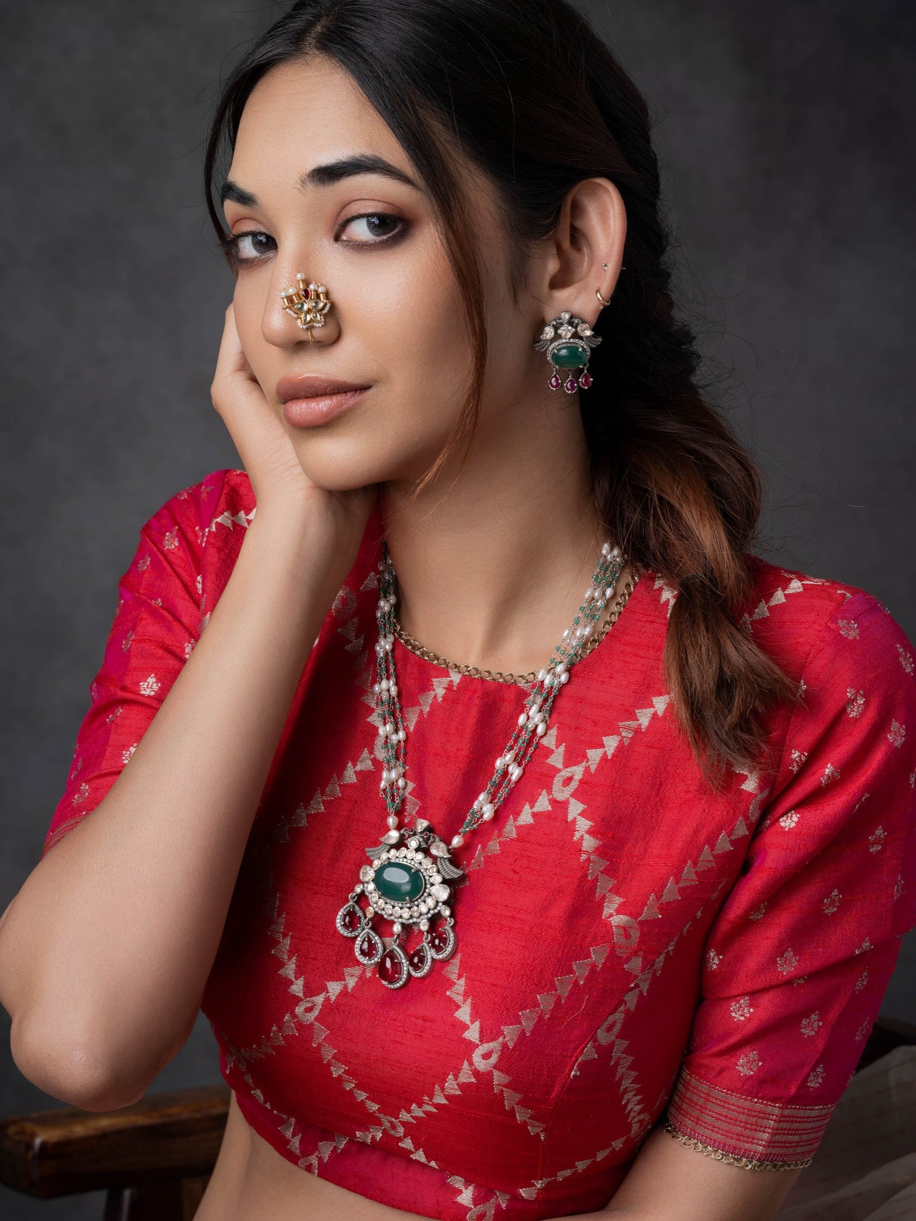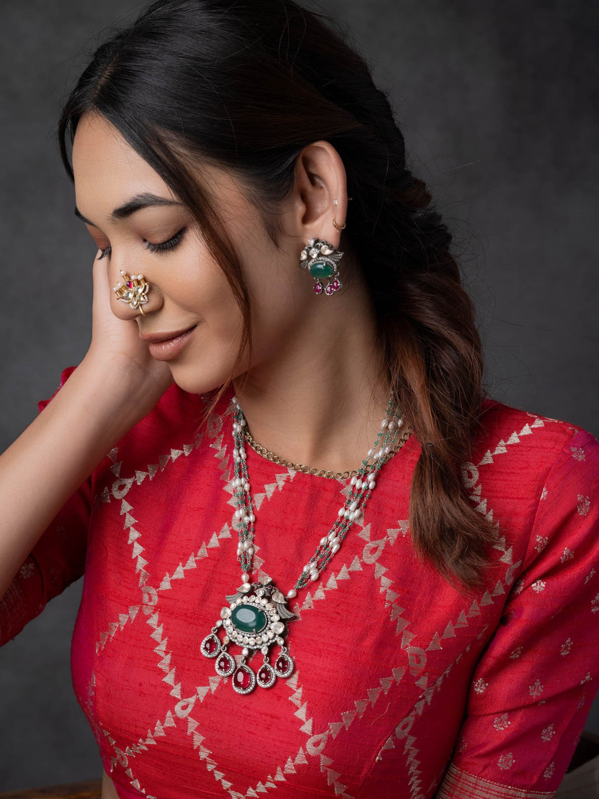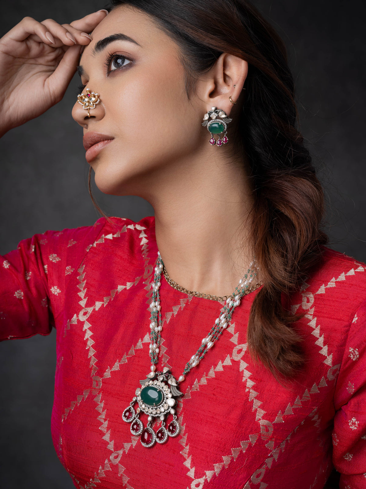 Indo-Western Antique Silver Finish Silver Pendant Set