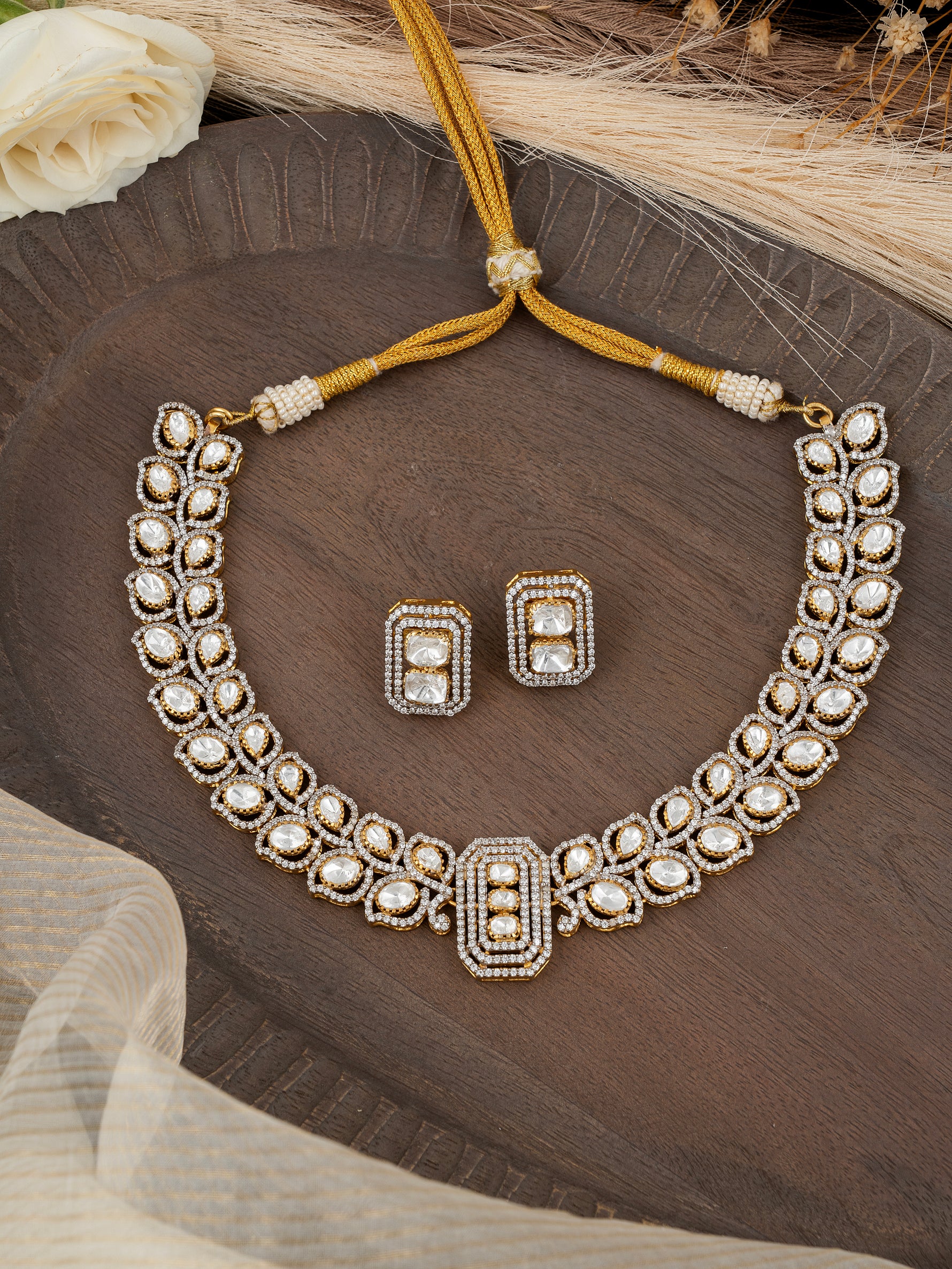 White colour Polki & Diamond Necklace Set | 92.5 Silver with Premium Gold Plating