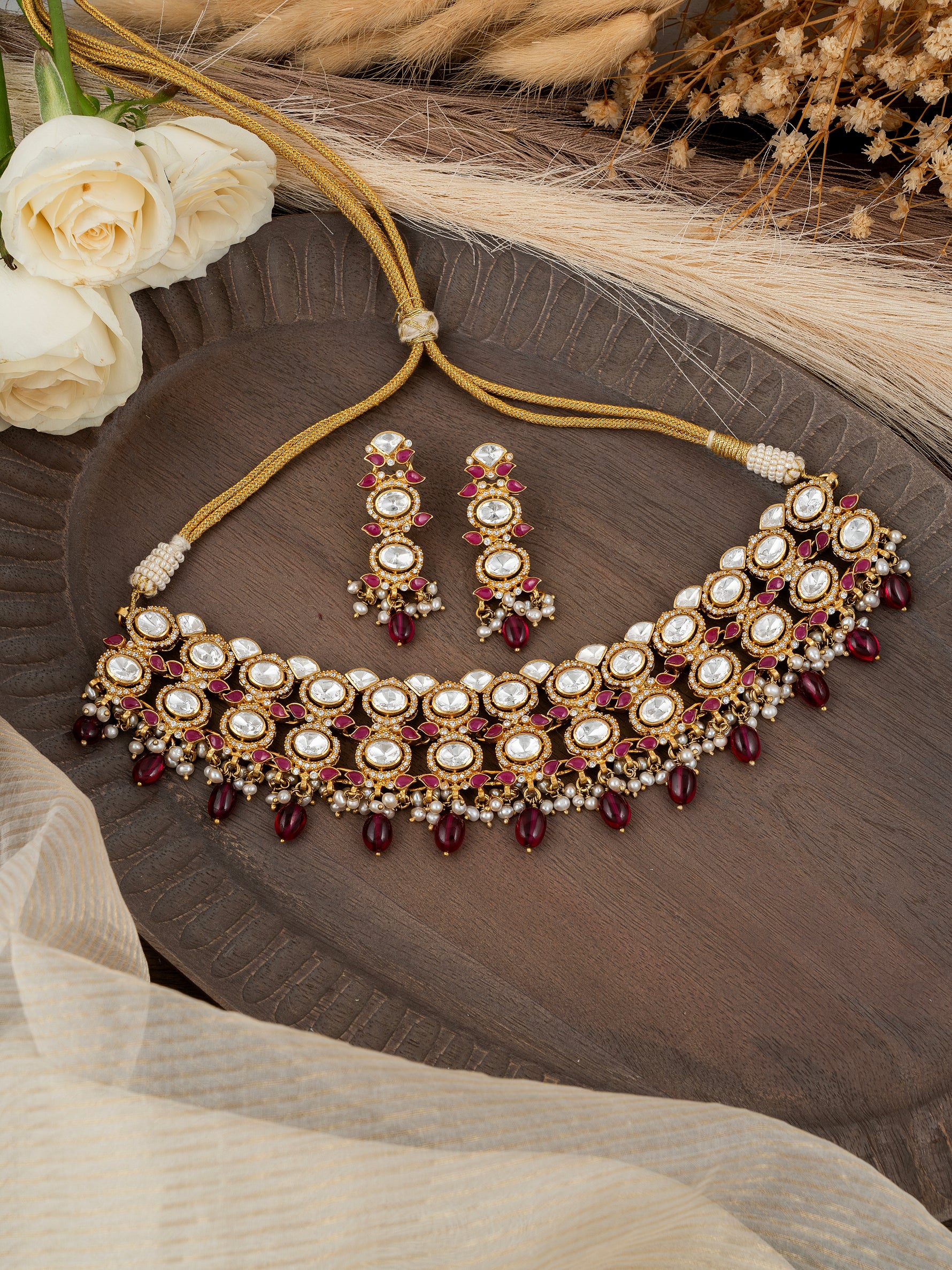 Ruby Stone Polki & Diamond Necklace Set | 92.5 Silver with Premium Gold Plating