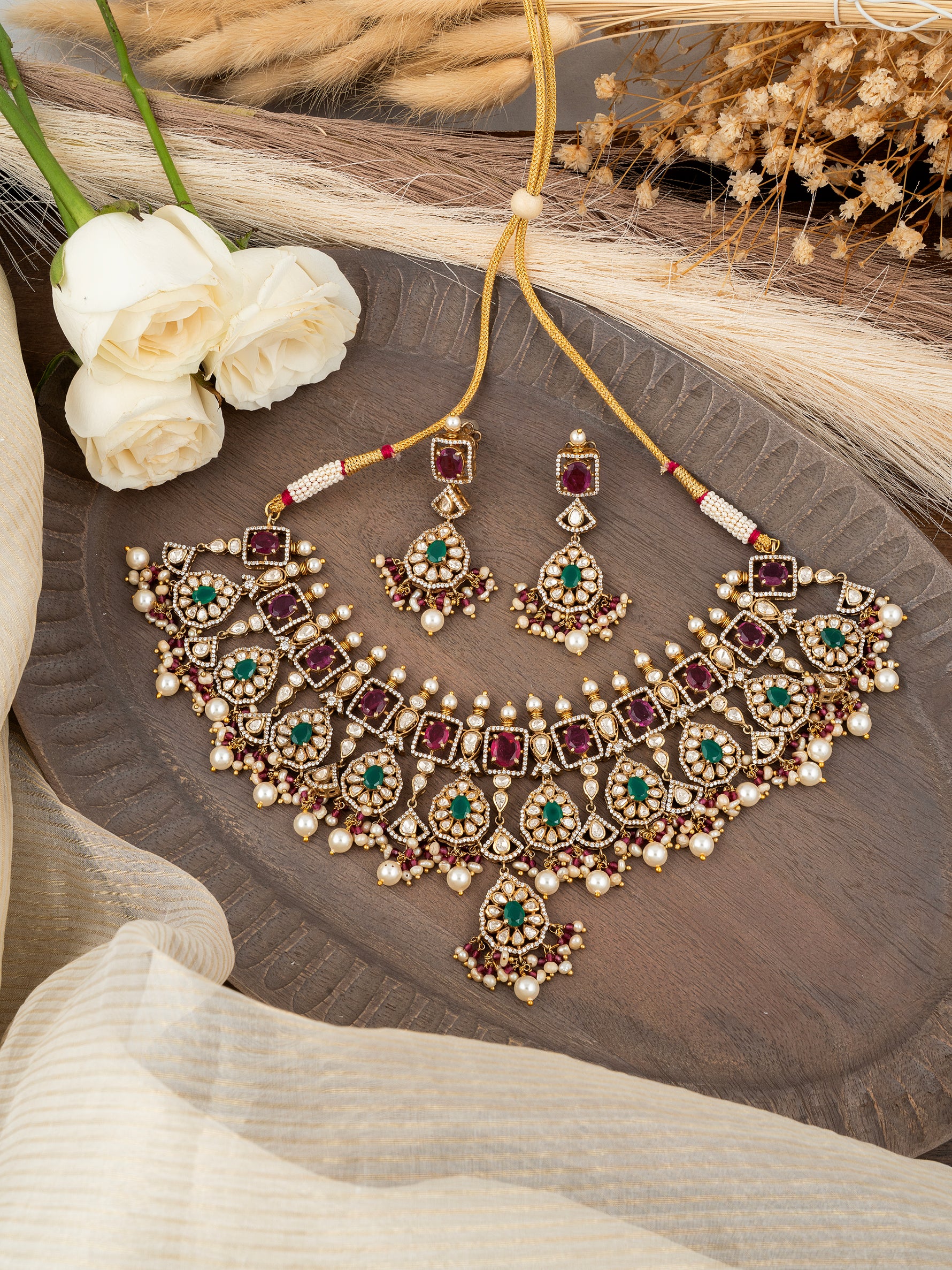 Polki & Diamond Necklace Set | 92.5 Silver with Premium Gold Plating