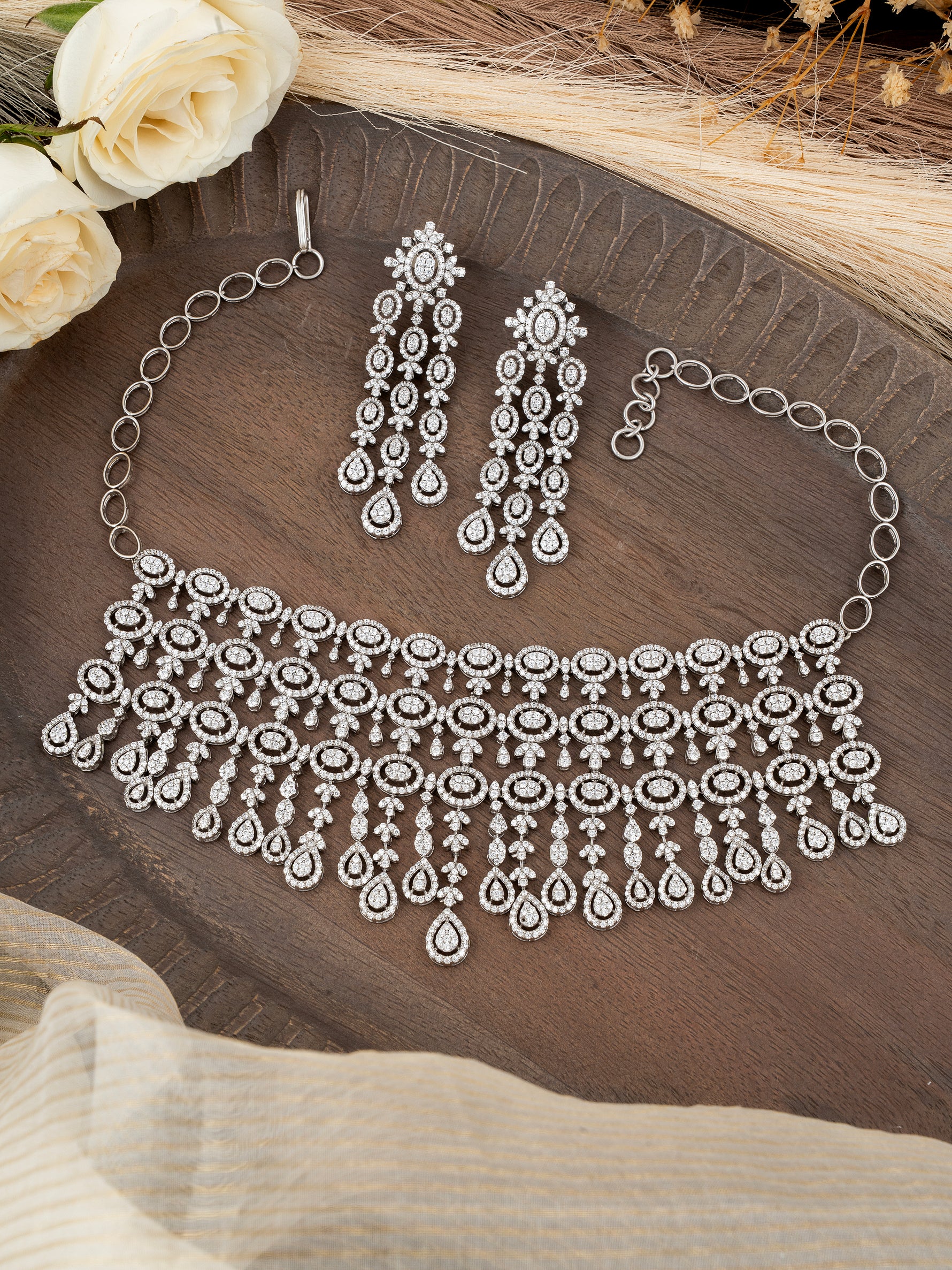 92.5 Silver Diamond-Set Necklace & Earrings – Silver Plated Bridal Jewelry