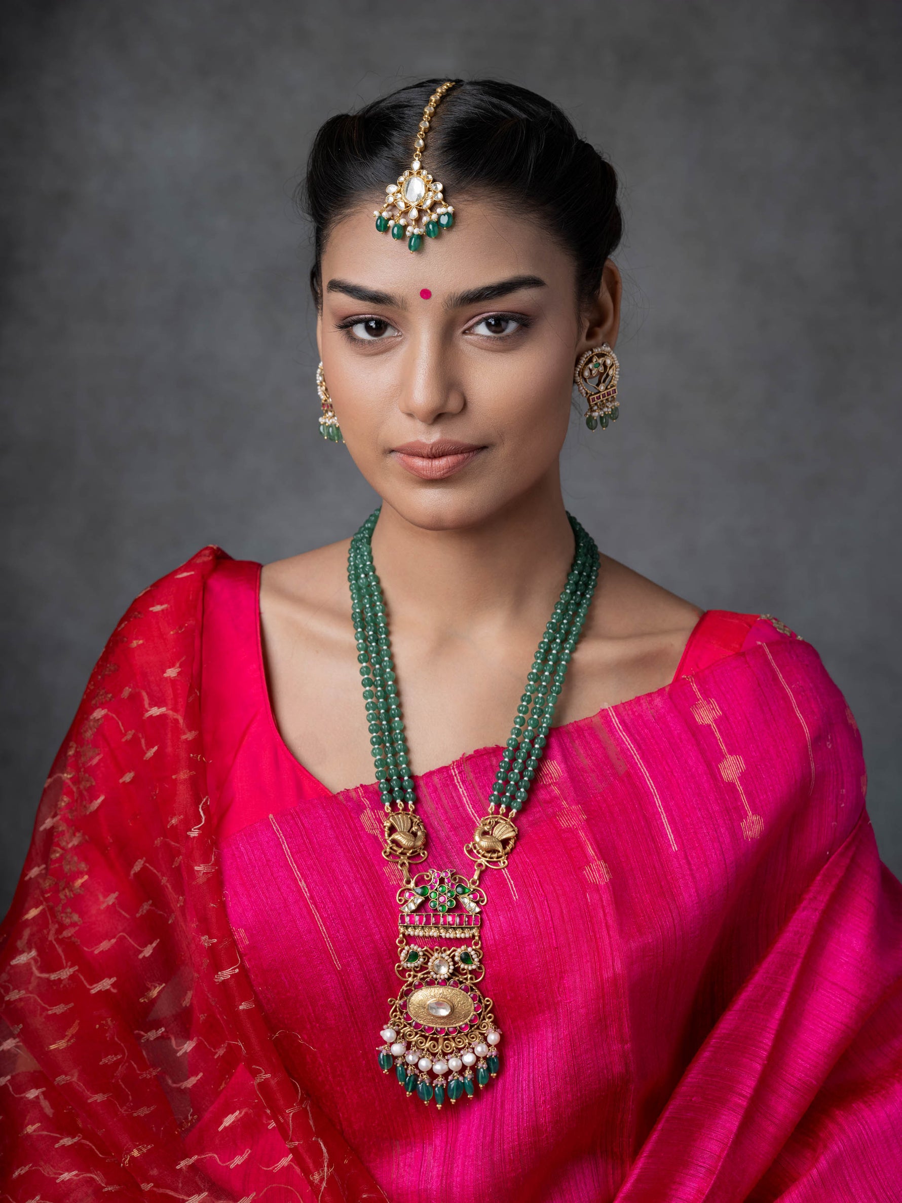 Ruhi,Regal Radiant Green Onyx Multistrand Silver Pendant Set