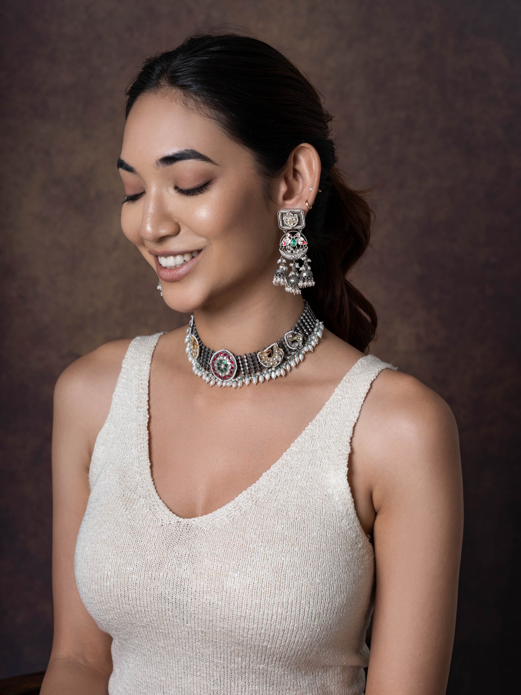 Sana, Classic Antique Silver Tone Silver Choker Set