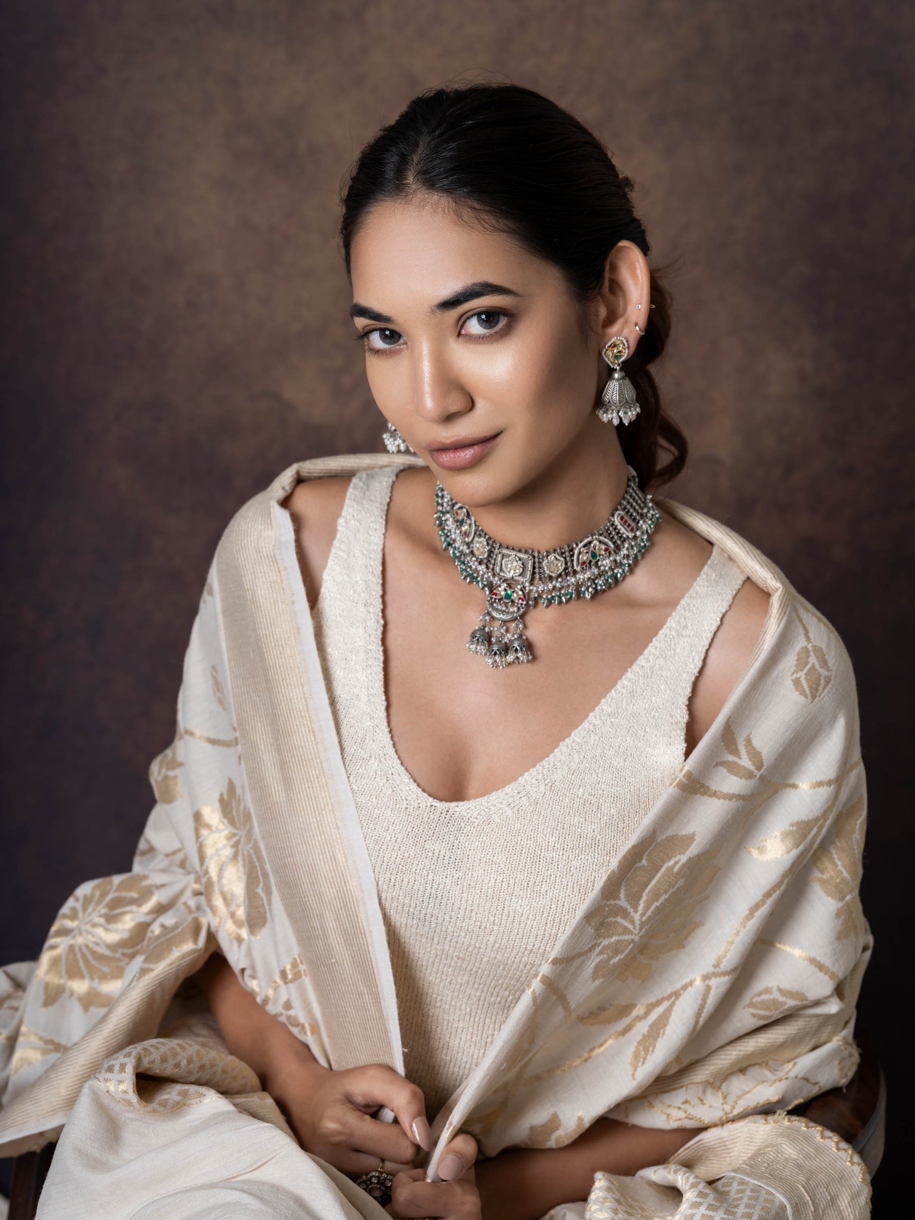 Suri, Antique Silver Toned kundan Silver Choker Set