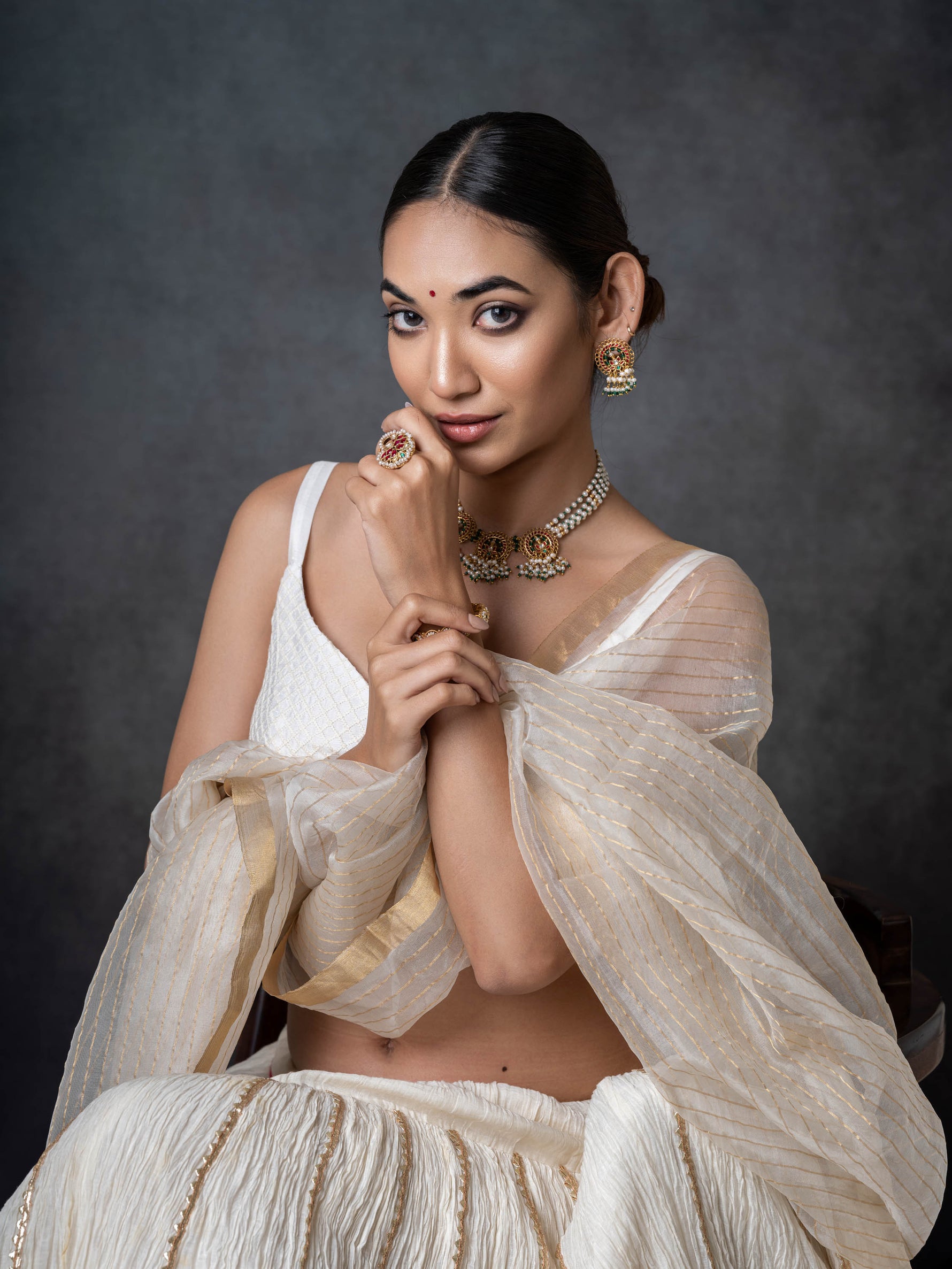 Traditional Lotus Inspired Emerald Silver Choker Set