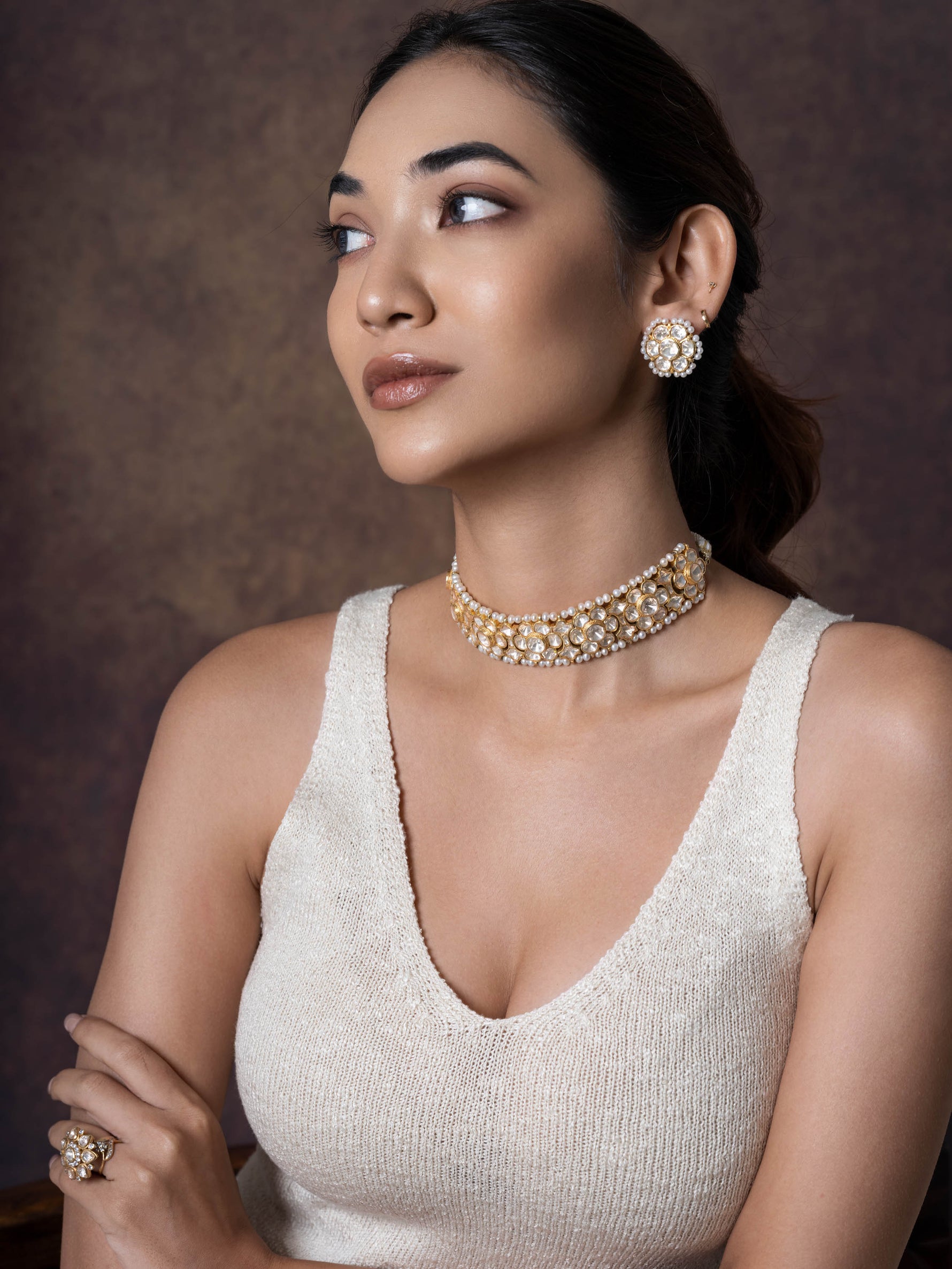 Vihana, Sophisticated & Eyecatching Floral Polki Silver Choker Set