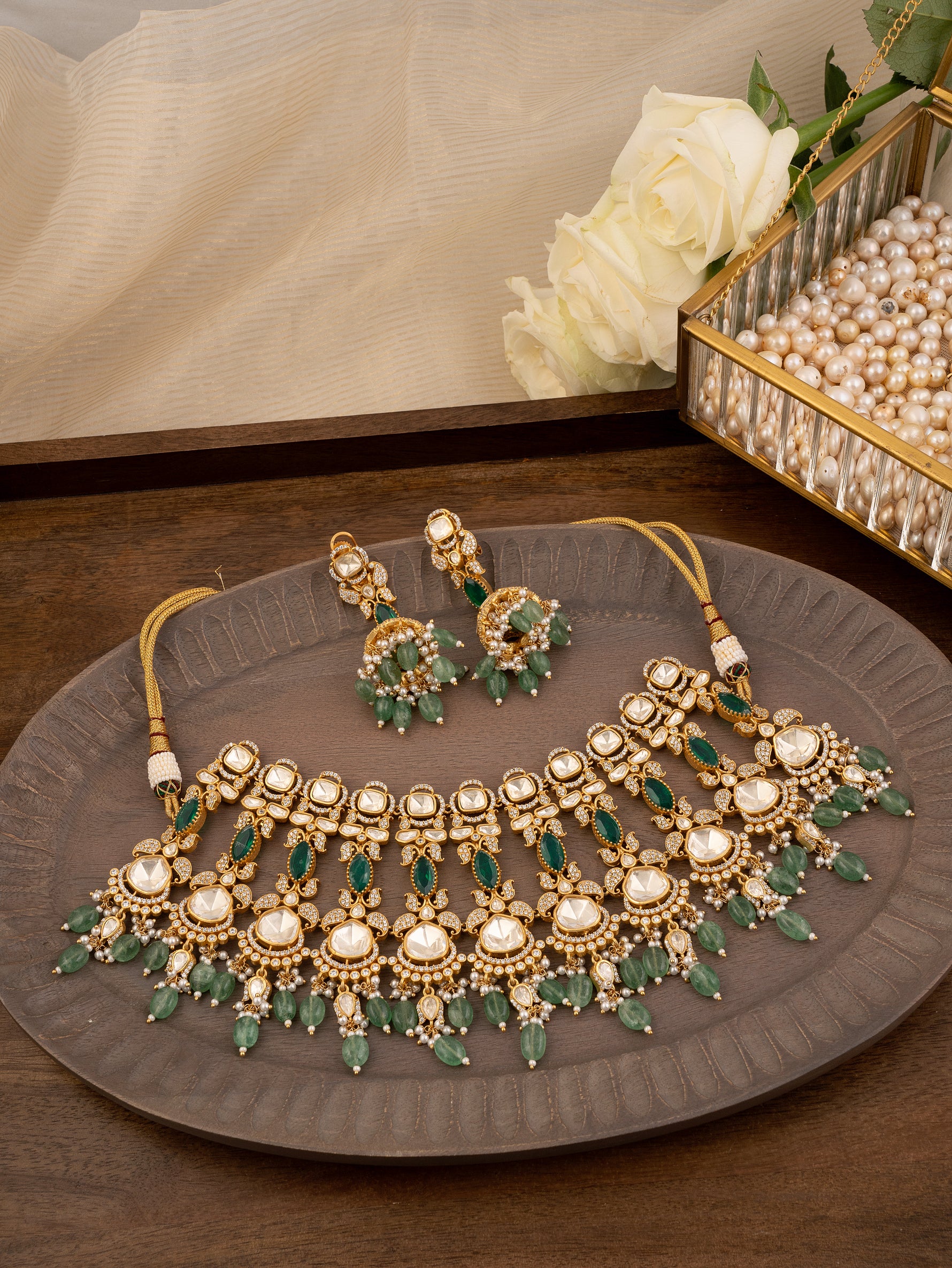 A perfect blend of heritage craftsmanship and modern elegance, our Faux Polki Collection by Studio Gulabi brings the grandeur of regal Polki jewelry to life. Using the Kundan technique, each piece features uncut Faux Polki stones set with silver foiling, creating a brilliant, near-real Polki shine that exudes royal sophistication.