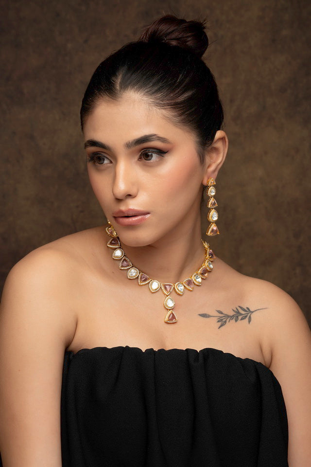 Shine Bright with Studio Gulabi’s White & Gold-Plated Diamond Necklace Set