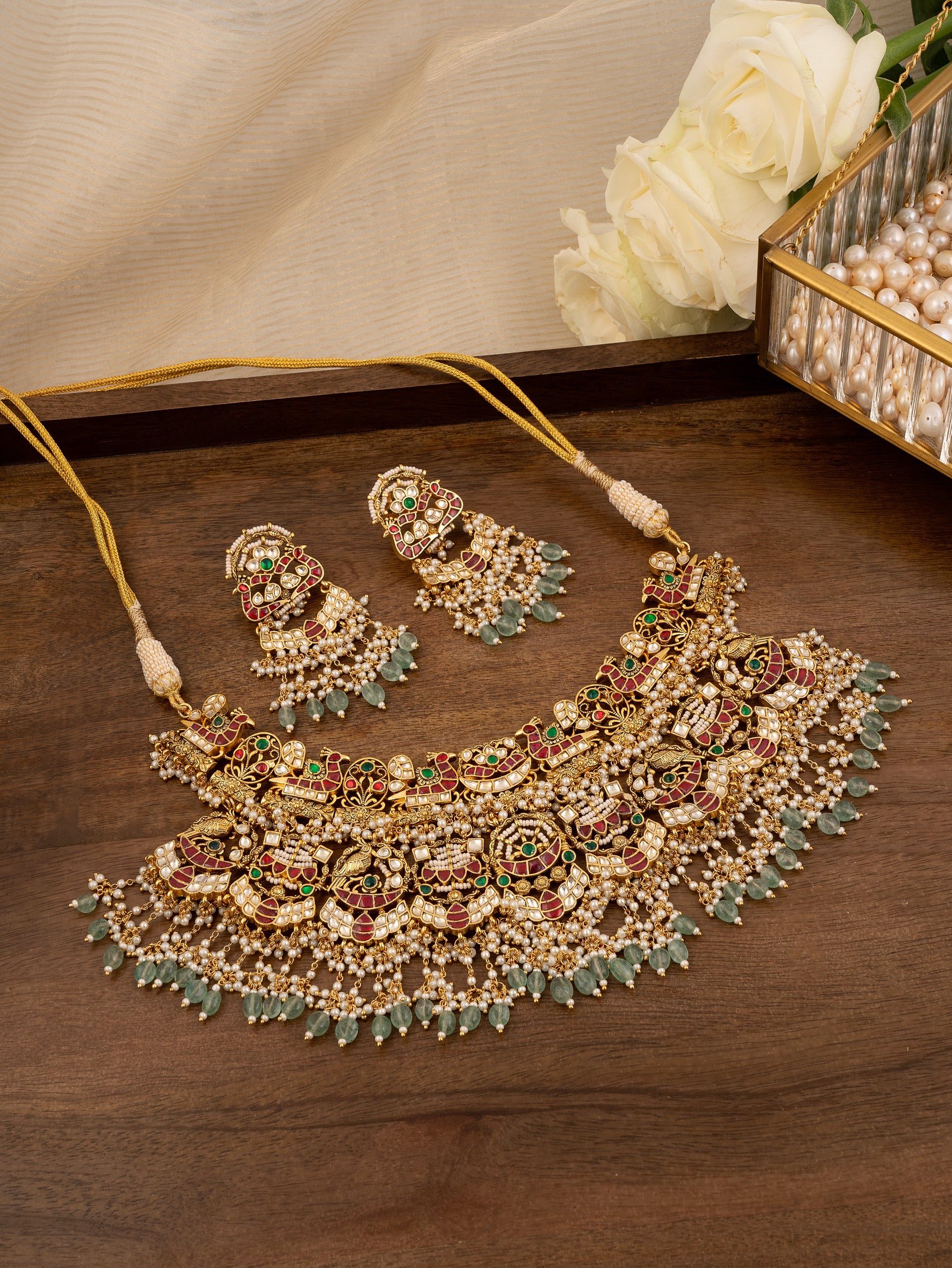 Multicolor Gold Plated Jadau Kundan Necklace Set