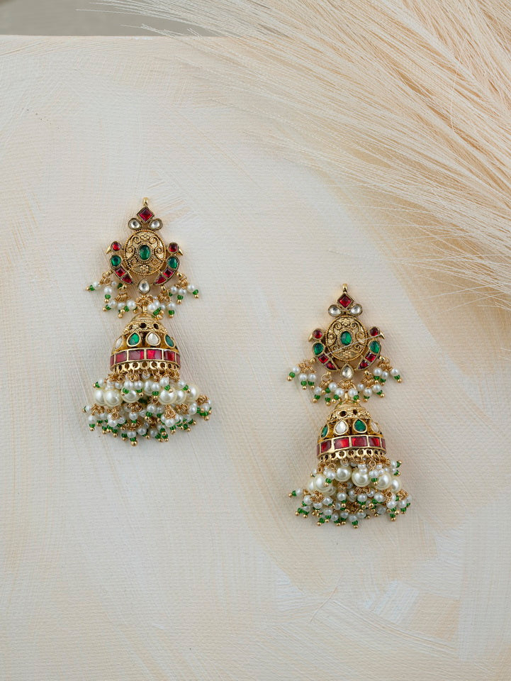 At Studio Gulabi, our love for Jadau Kundan shines through every piece we create. Rooted in tradition yet crafted for modern elegance, our designs feature gemstones set in silver foil for unmatched brilliance, held together in brass, and finished with luxurious gold plating. Inspired by heirloom treasures, we bring you exquisite affordable luxury that celebrates Indian artistry.