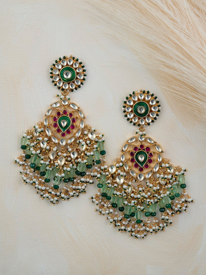 Multicolor Gold Plated Jadau Kundan Earrings
