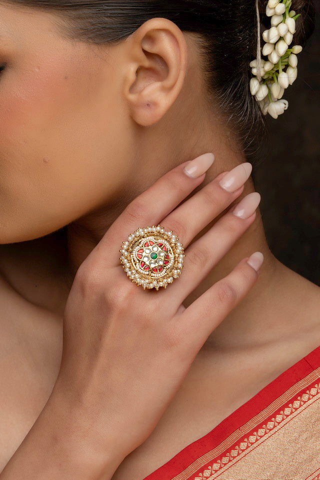 Make a stunning impression with the regal charm of Studio Gulabi’s Samaira Jadav Kundan Ring—where tradition meets unmatched brilliance. ✨
