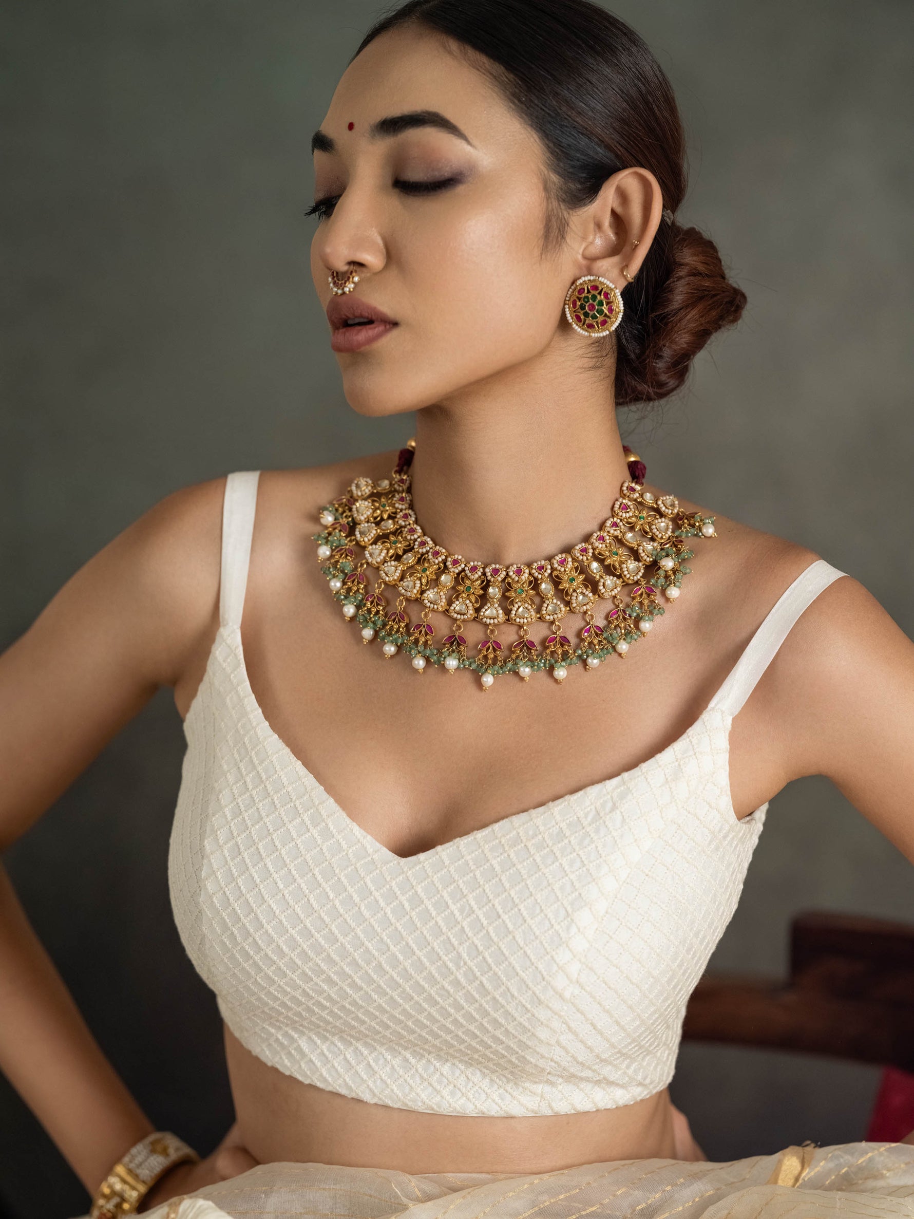Ruhi,Oppulent Kundan Silver Necklace Set