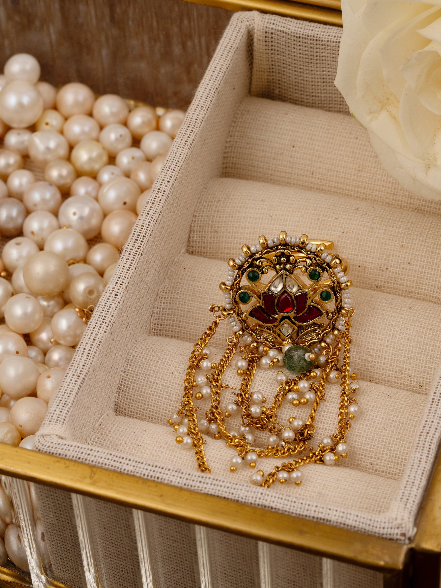 At Studio Gulabi, we celebrate the timeless artistry of Jadau Kundan, a technique that beautifully sets gemstones in silver foil for unmatched brilliance. Crafted with precision, our pieces are made with brass for durability, gold plating for elegance, and a heritage-inspired design that brings affordable luxury to you.