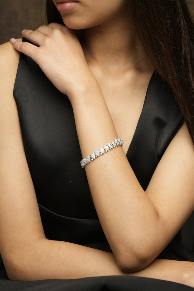 White Color Silver Plated Faux Diamond Bracelet