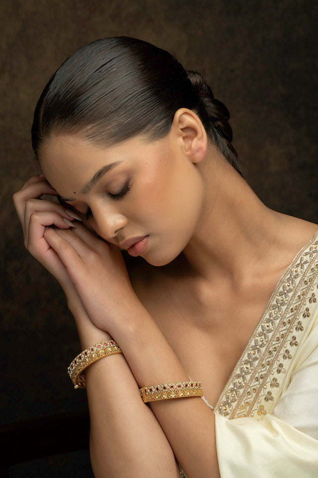 Experience the splendor of Jadau Kundan craftsmanship with Studio Gulabi’s handcrafted bangles—a seamless blend of heritage artistry and contemporary elegance. Inspired by the royal traditions of Indian jewelry, these bangles exude a regal charm while offering a lightweight, comfortable fit for all-day wear.