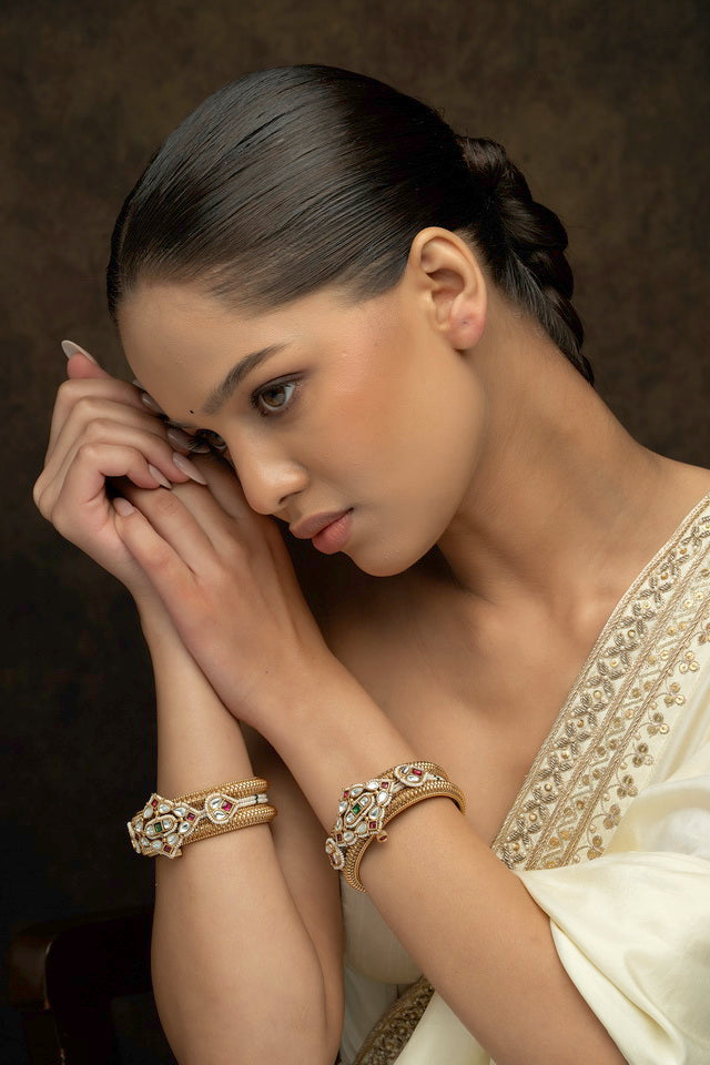 Step into the heritage of luxury with Studio Gulabi’s Jadau Kundan Bangles—a symbol of timeless beauty and cultural elegance. ✨