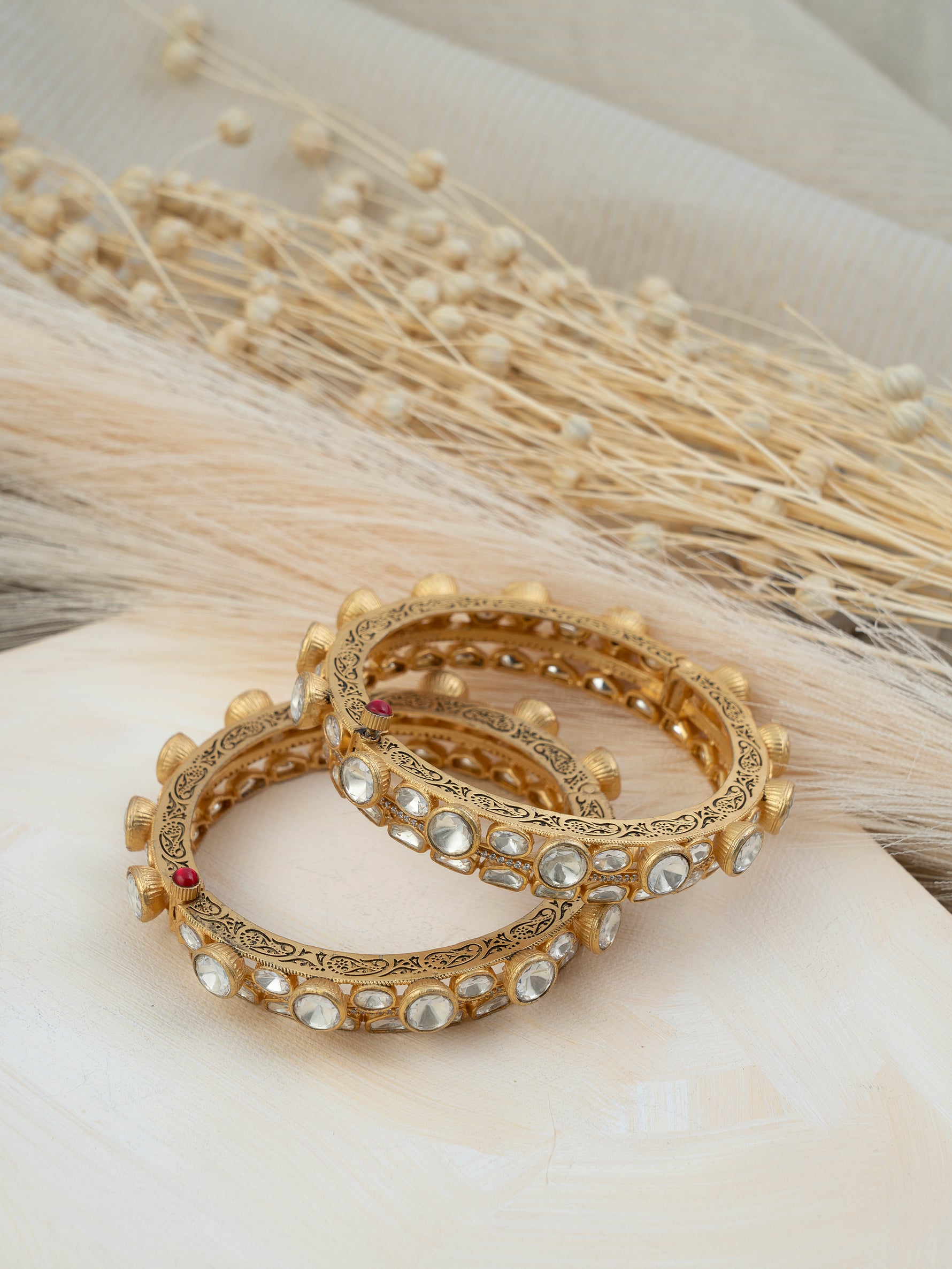 White Color Gold Plated Thappa Jadau Kundan Bangles