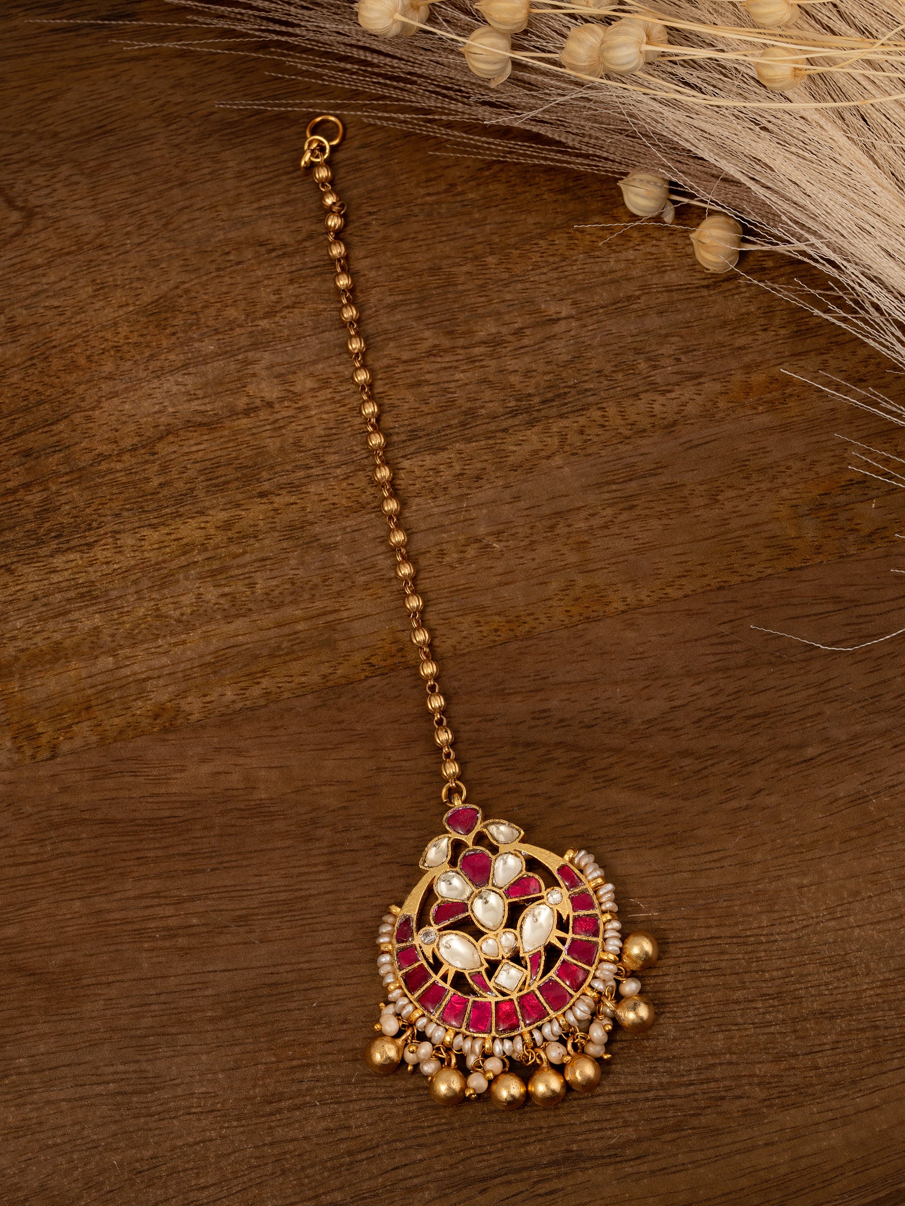 Multicolor Gold Plated Jadau Kundan Maangteeka
