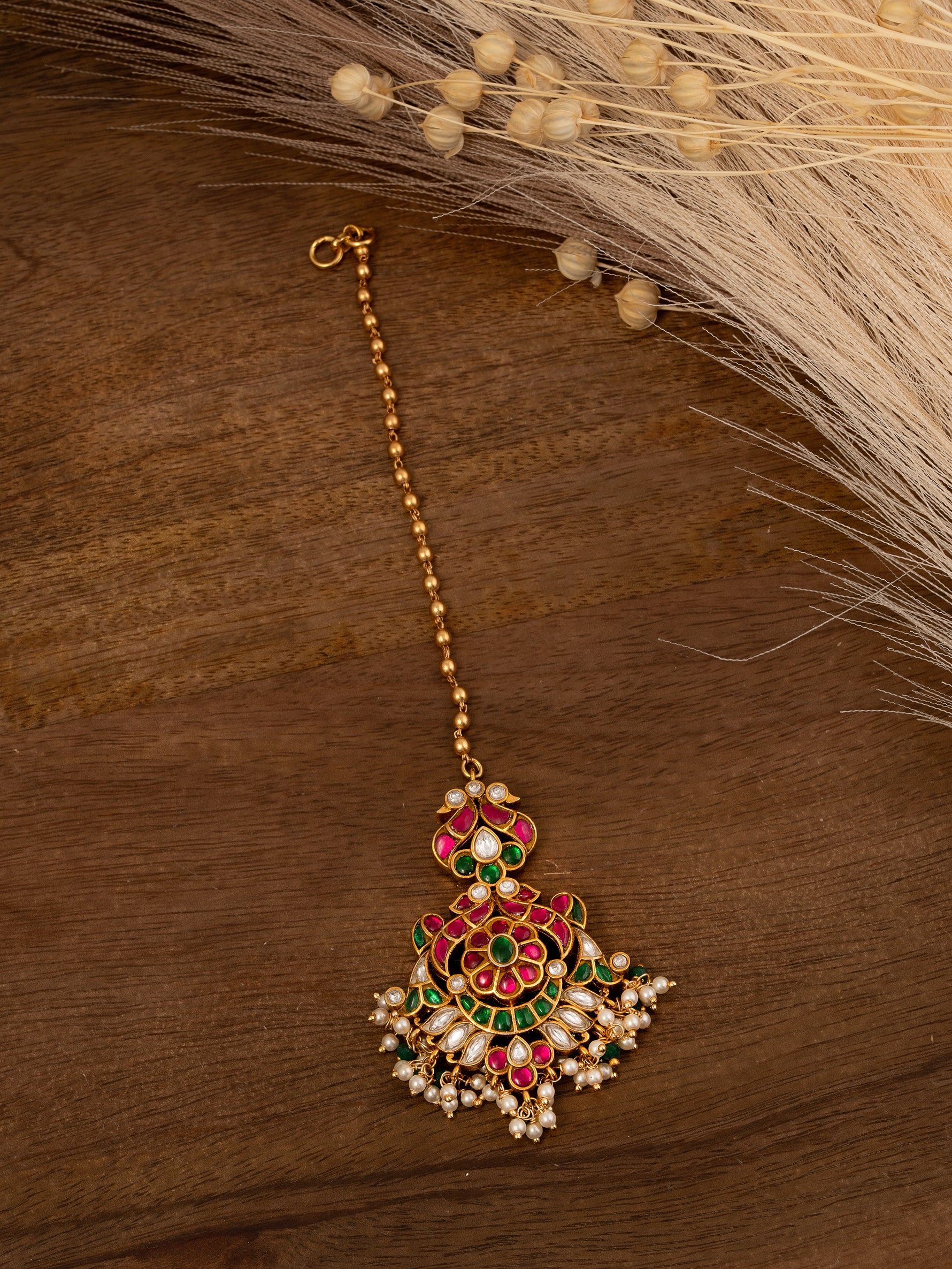 Multicolor Gold Plated Jadau Kundan Maangteeka