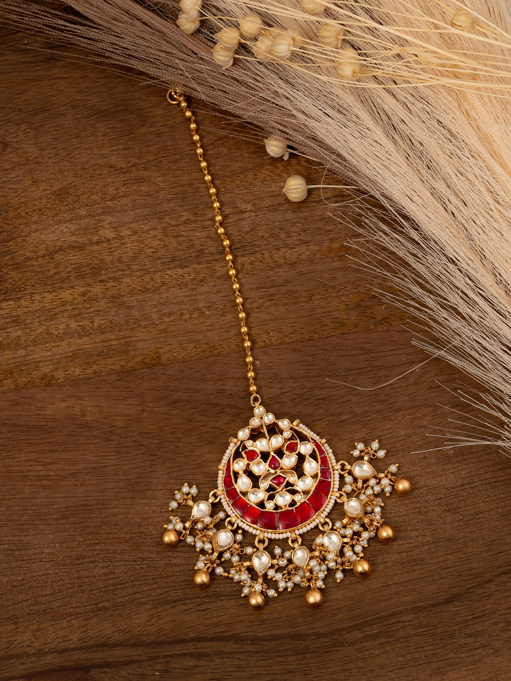 Multicolor Gold Plated Jadau Kundan Maangteeka