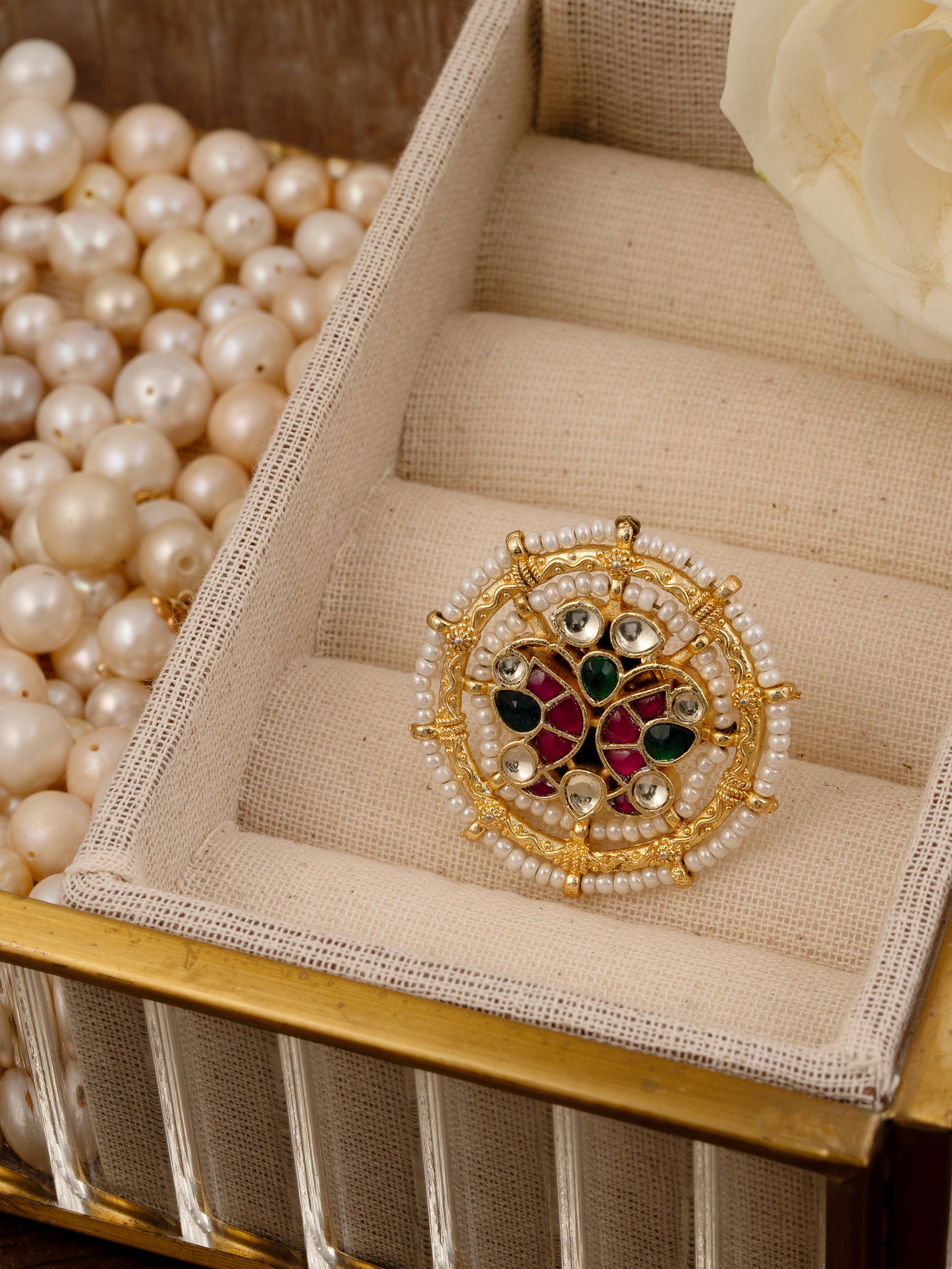 At Studio Gulabi, we celebrate the timeless artistry of Jadau Kundan, a technique that beautifully sets gemstones in silver foil for unmatched brilliance. Crafted with precision, our pieces are made with brass for durability, gold plating for elegance, and a heritage-inspired design that brings affordable luxury to you.