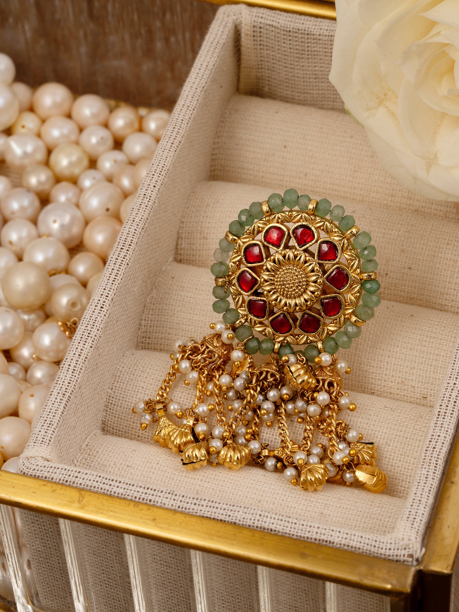 At Studio Gulabi, we celebrate the timeless artistry of Jadau Kundan, a technique that beautifully sets gemstones in silver foil for unmatched brilliance. Crafted with precision, our pieces are made with brass for durability, gold plating for elegance, and a heritage-inspired design that brings affordable luxury to you.