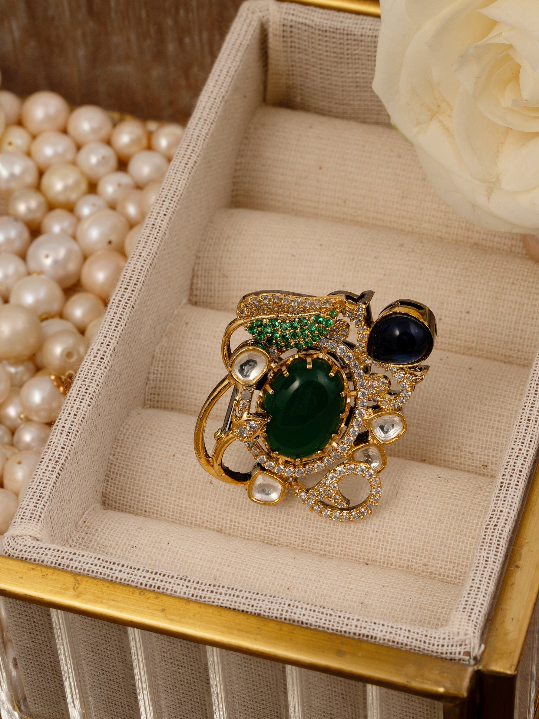 At Studio Gulabi, we bring you the charm of Polki craftsmanship, where uncut gemstones are set in silver foil using Jadau techniques for a radiant shine. Designed for those who appreciate heritage-inspired elegance, our Polki rings blend tradition with contemporary allure—affordable luxury at its finest.