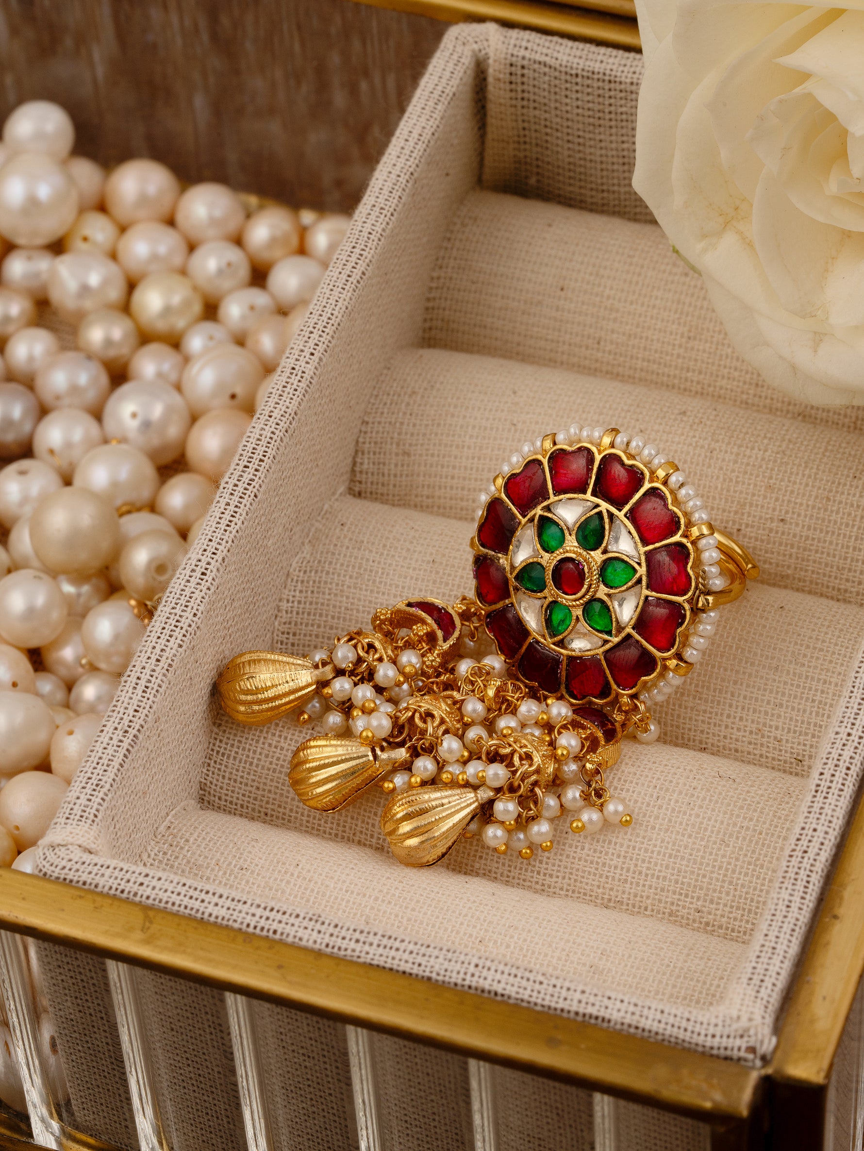 At Studio Gulabi, we celebrate the timeless artistry of Jadau Kundan, a technique that beautifully sets gemstones in silver foil for unmatched brilliance. Crafted with precision, our pieces are made with brass for durability, gold plating for elegance, and a heritage-inspired design that brings affordable luxury to you.