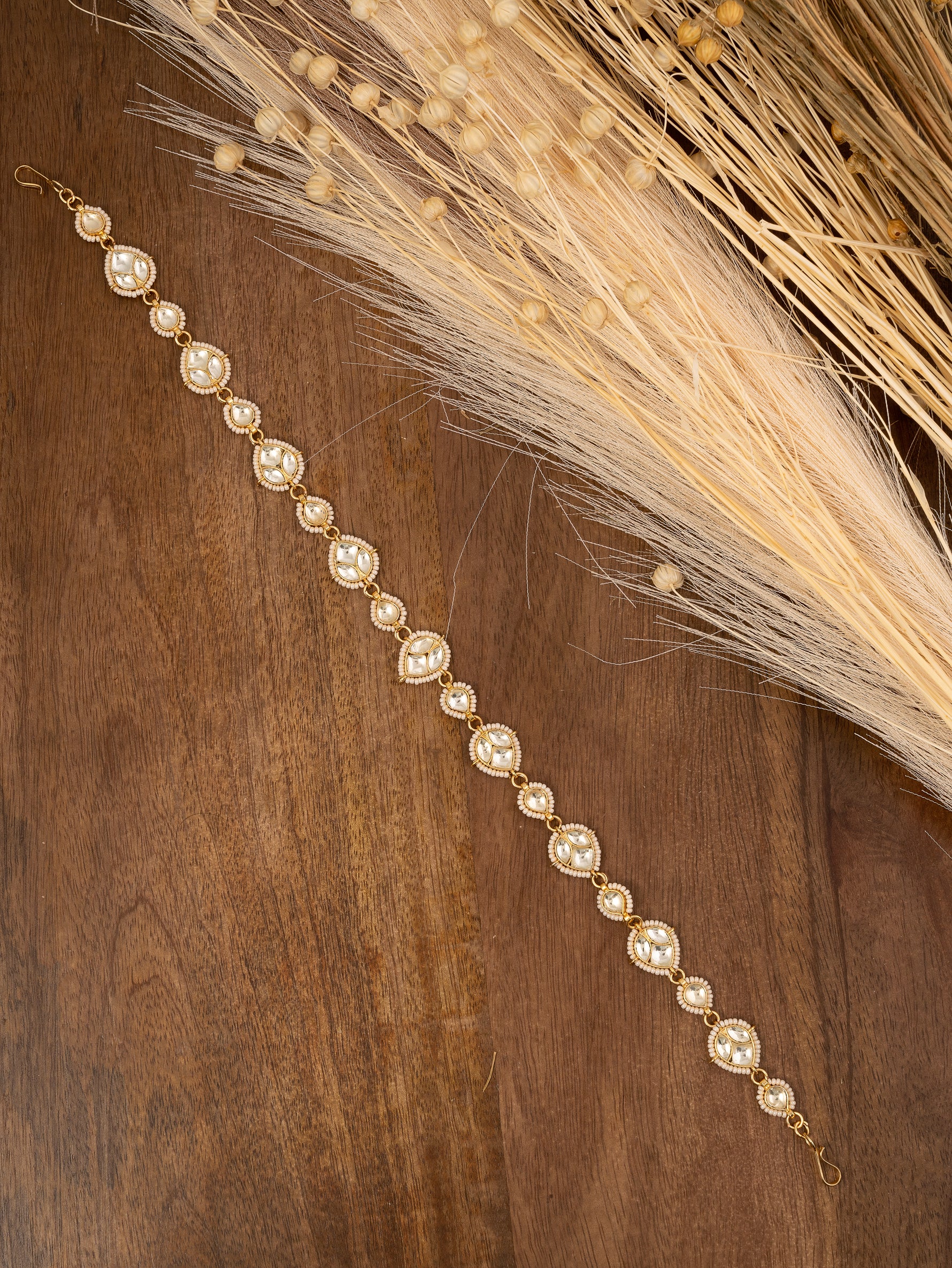 White Color Gold Plated Jadau Kundan Sheeshphool