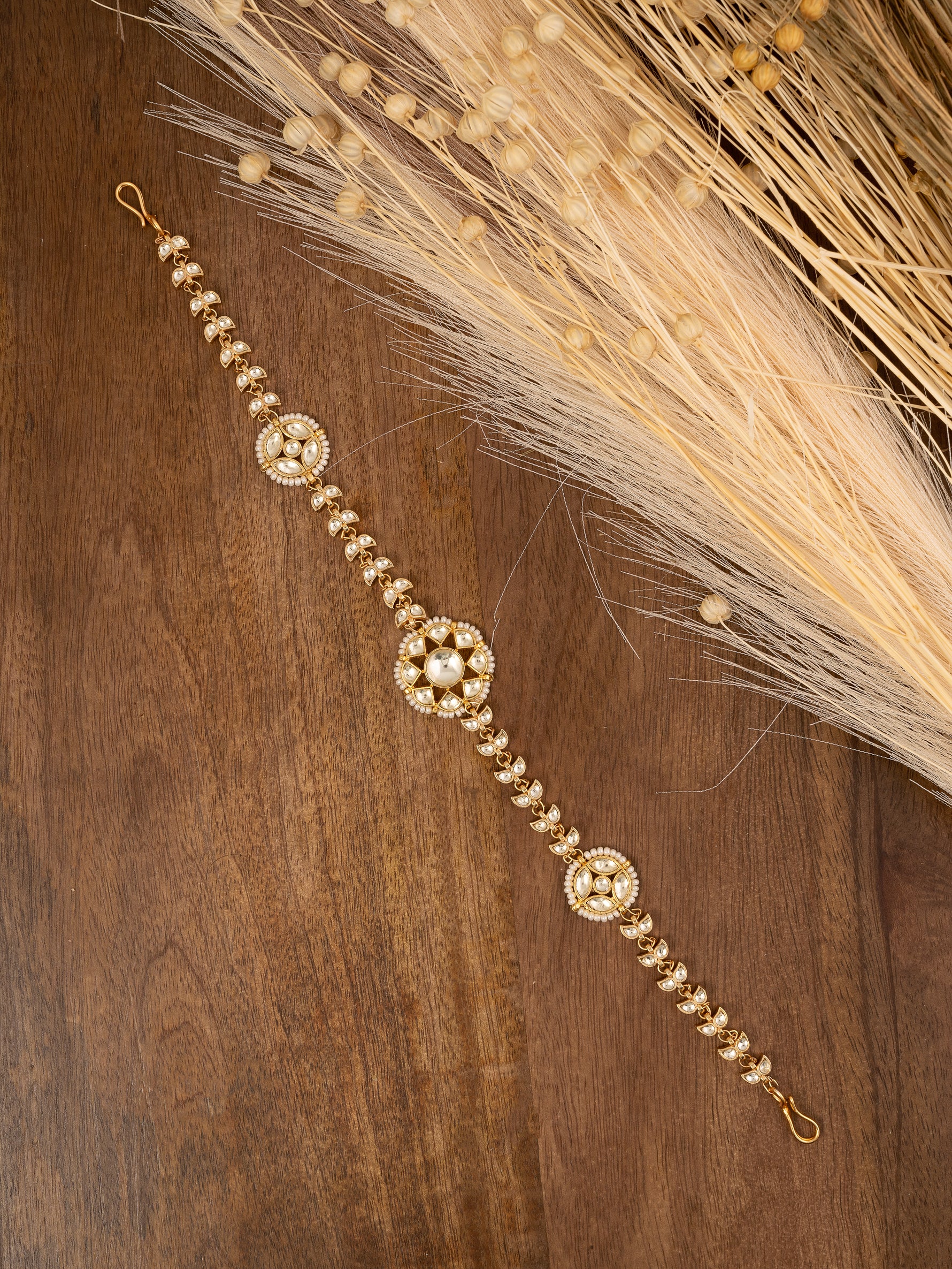White Color Gold Plated Jadau Kundan Sheeshphool