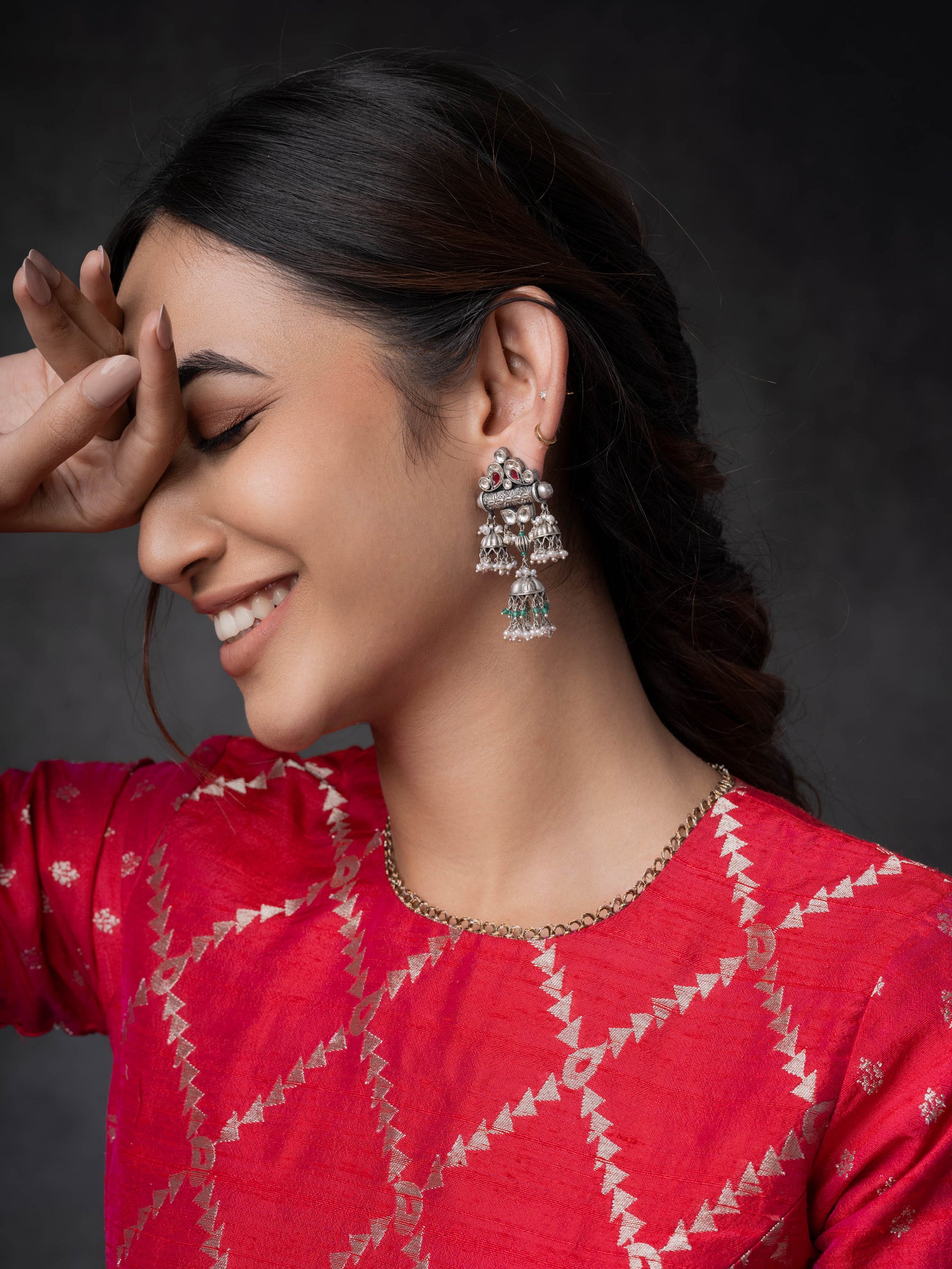 Mrinali,Classic Silver Toned Mini Jhumkhas