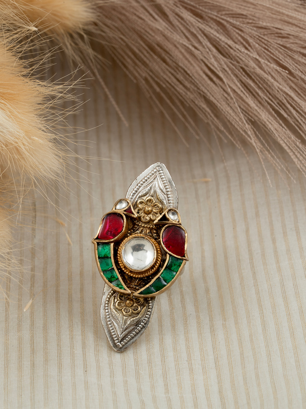 Multicolour Jadau Kundan Ring - 92.5 Silver
