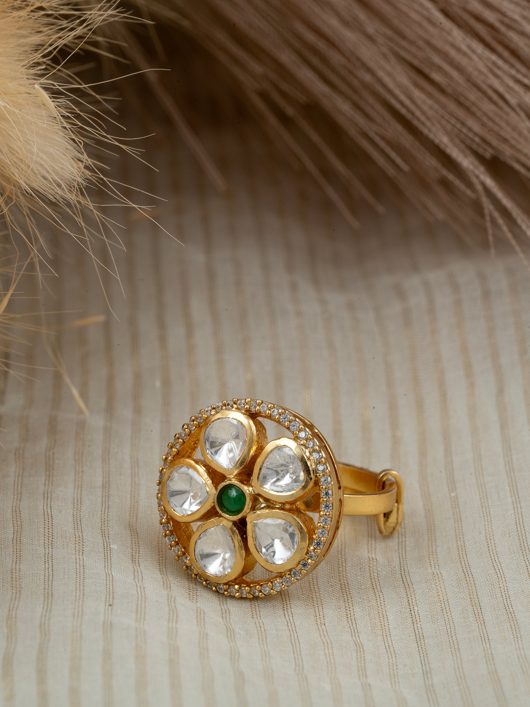 Moissanite Polki Adjustable Ring – 92.5 Silver Gold Plated Statement Jewelry