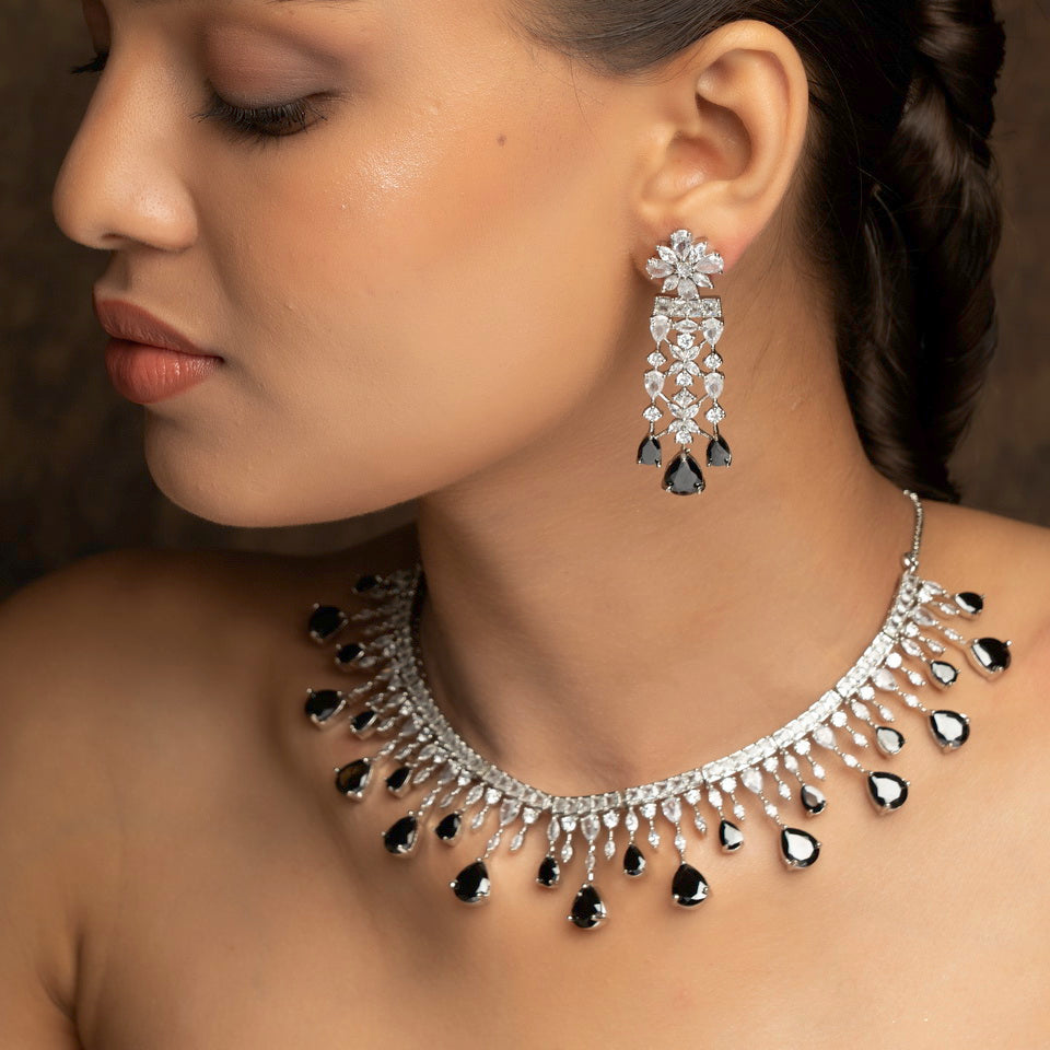 Unit price perBlack Stone & White Diamond Gold-Plated Necklace Set – Bold Glamour for Evening Elegance