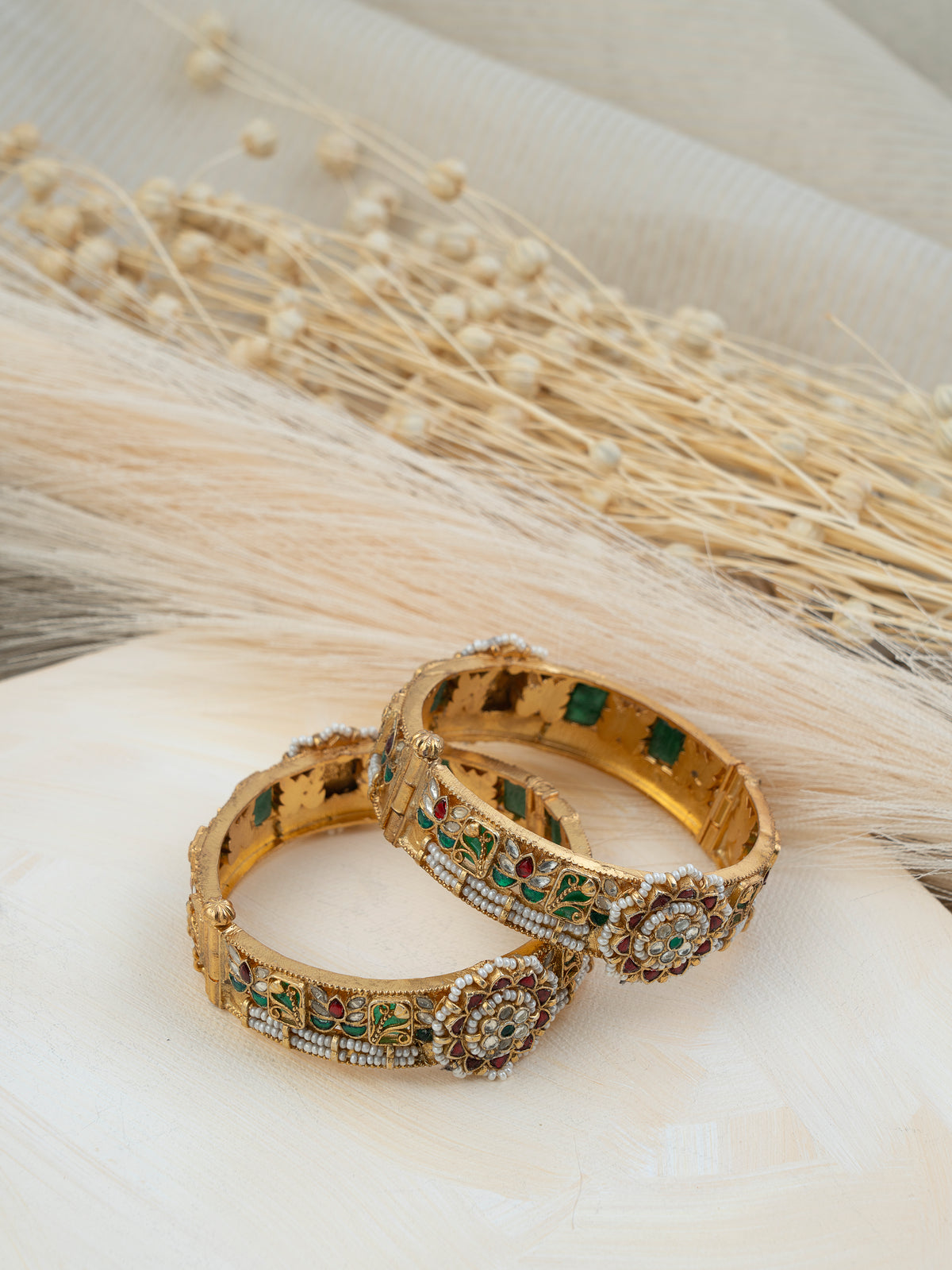 Each design is meticulously crafted, featuring gemstones set in silver foil for a radiant glow, secured in brasswork, and finished with rich gold plating to bring heirloom-inspired luxury within reach. A perfect harmony of tradition and accessibility, our collection ensures that classic Indian grandeur is yours to cherish.