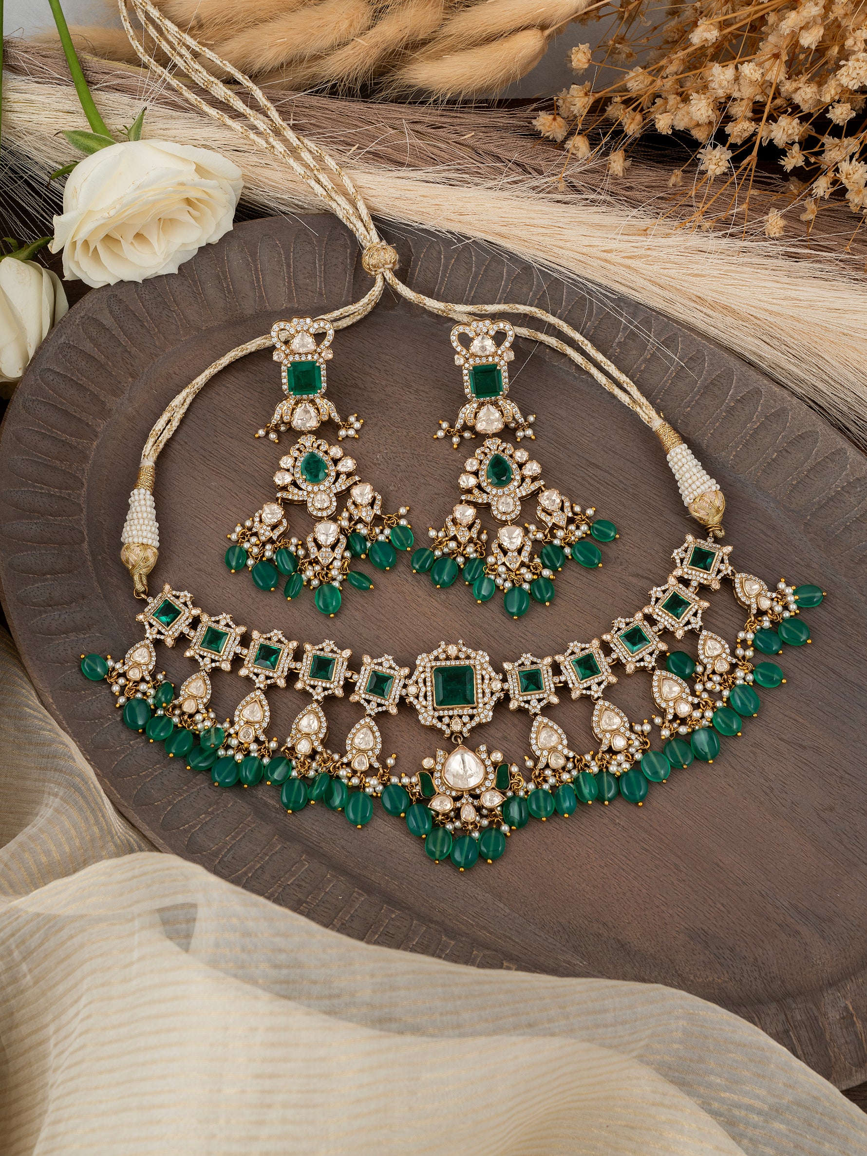 Onyx and Polki Bridal Set | 92.5 Silver with Premium Gold Plating